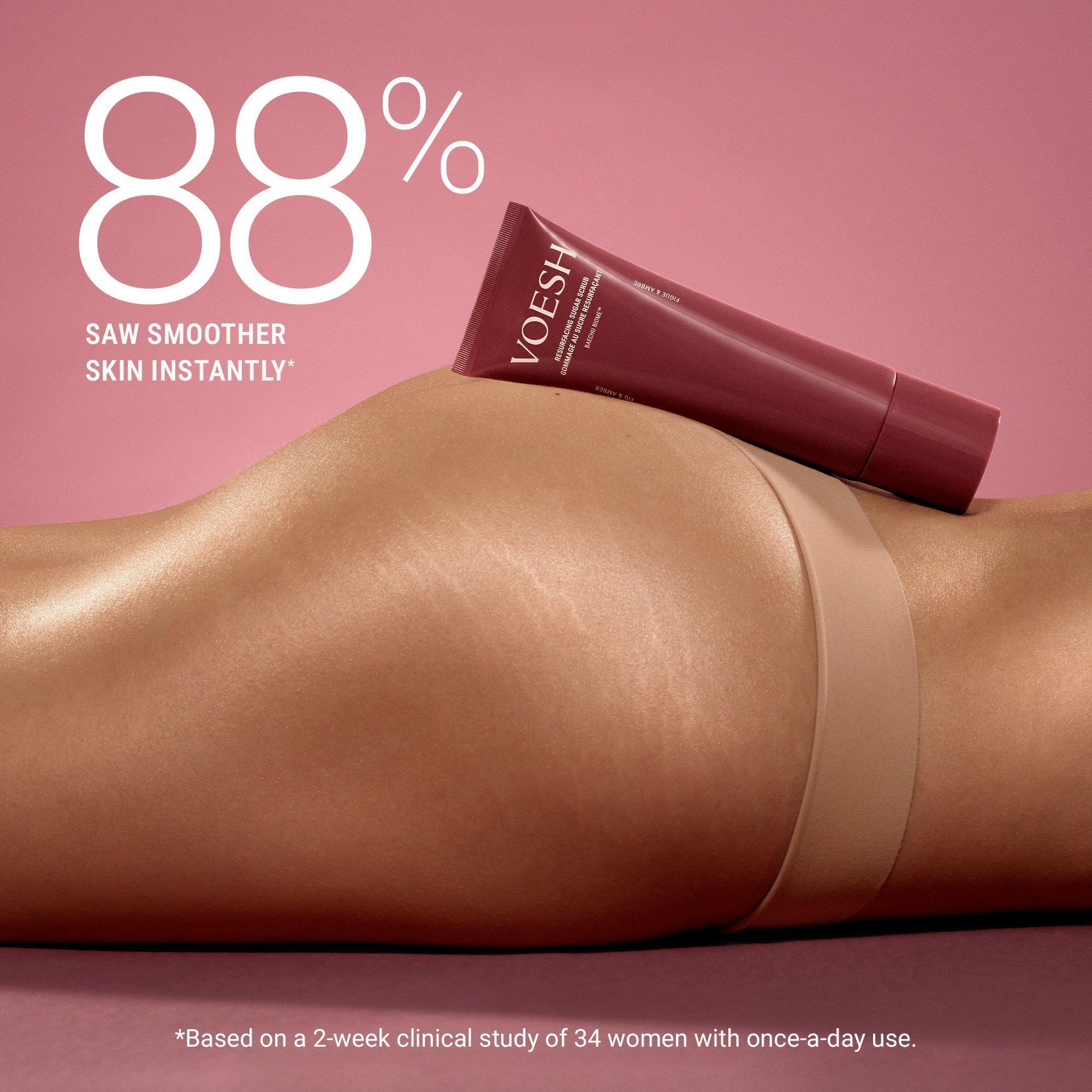 Reveal smooth, radiant skin with VOESH’s Resurfacing Sugar Scrub. Sugar, red bean, and plant AHAs exfoliate to brighten, while nourishing oils lock in lasting hydration.