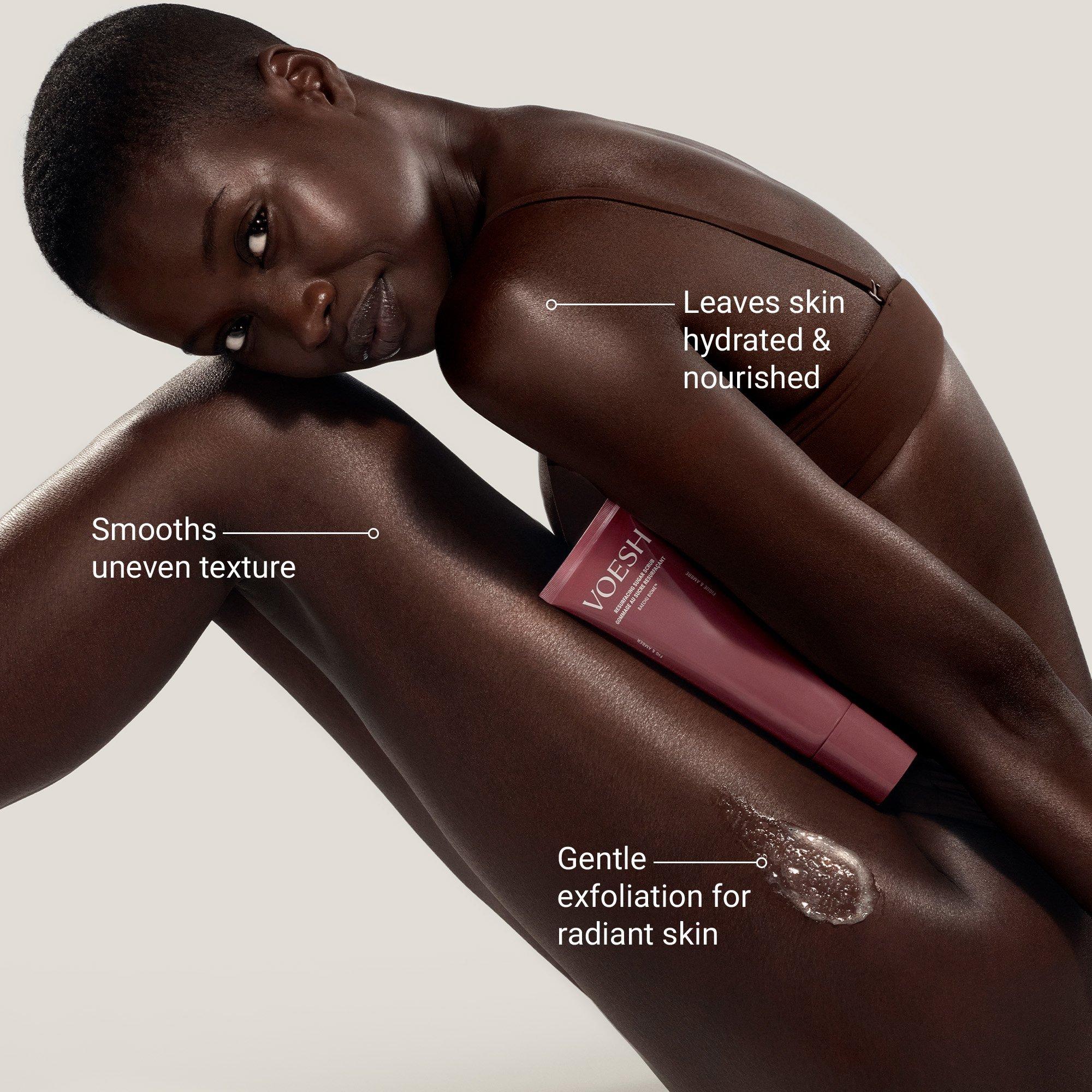 Reveal smooth, radiant skin with VOESH’s Resurfacing Sugar Scrub. Sugar, red bean, and plant AHAs exfoliate to brighten, while nourishing oils lock in lasting hydration.