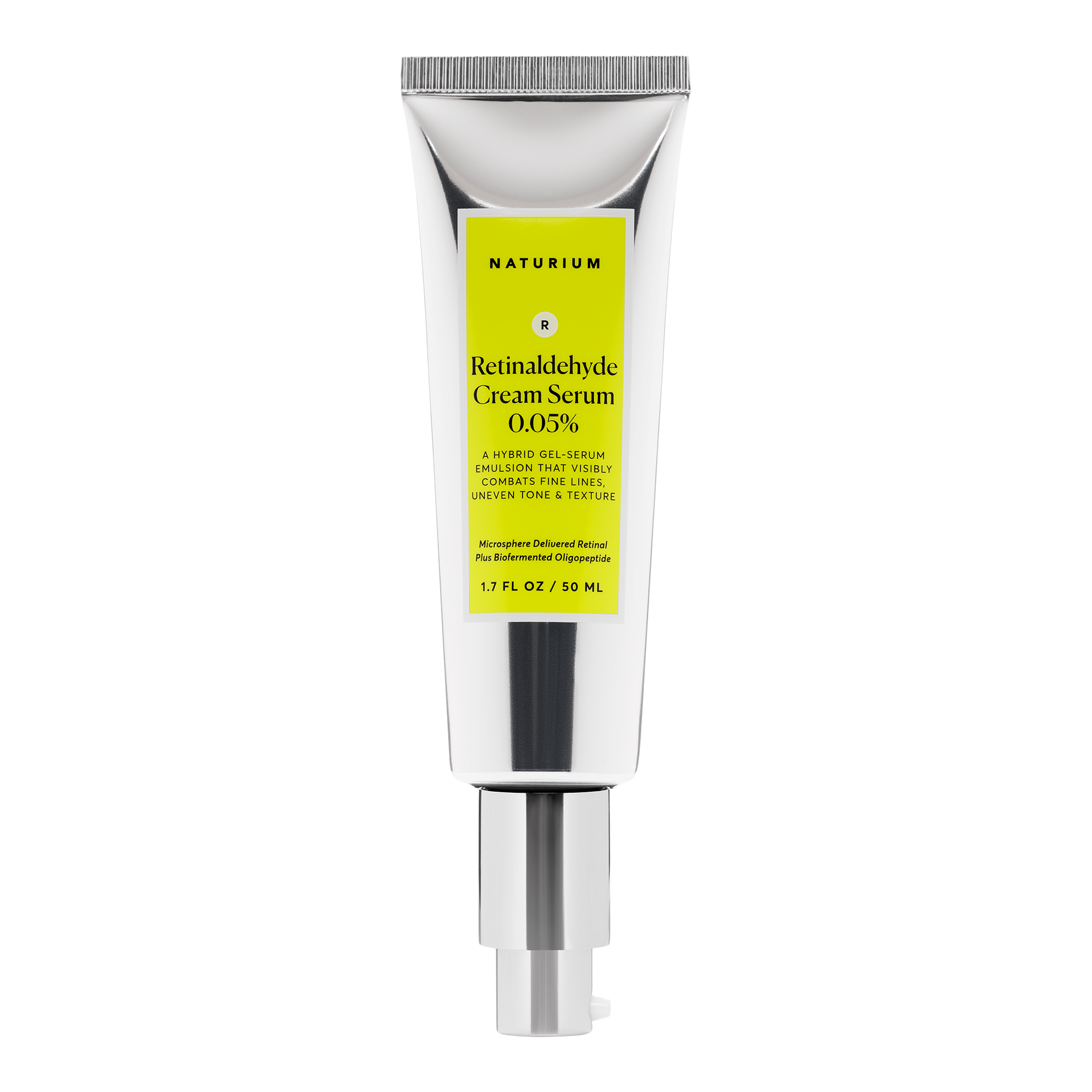 Naturium's Retinaldehyde Cream Serum 0.05% is formulated with a sustained-release retinaldehyde; a potent retinol that directly converts to retinoic acid, to address the look of fine lines and wrinkles, uneven tone and texture.