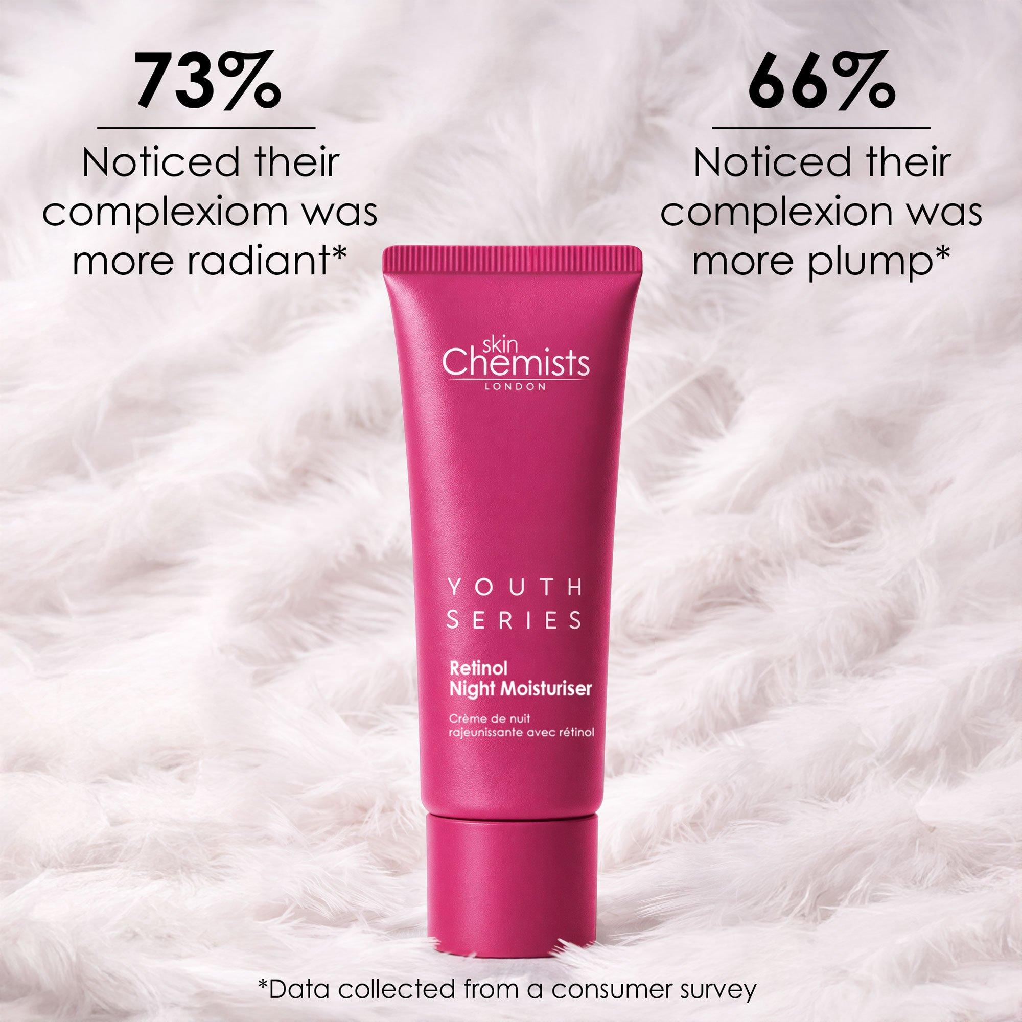 Discover skinChemists Youth Series Retinol & Bakuchiol Night Moisturizer. This vegan, cruelty-free formula with Retinol, Bakuchiol, and Hyaluronic Acid smooths fine lines and hydrates deeply while you sleep. Wake up to a plumper, firmer, and radiant complexion. Shop now for youthful skin!