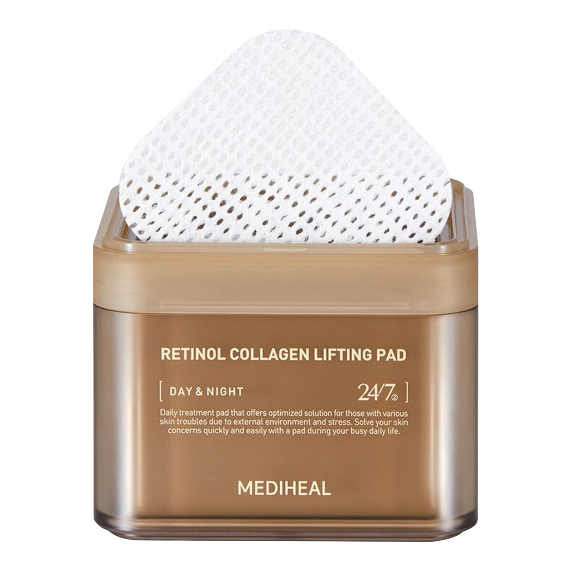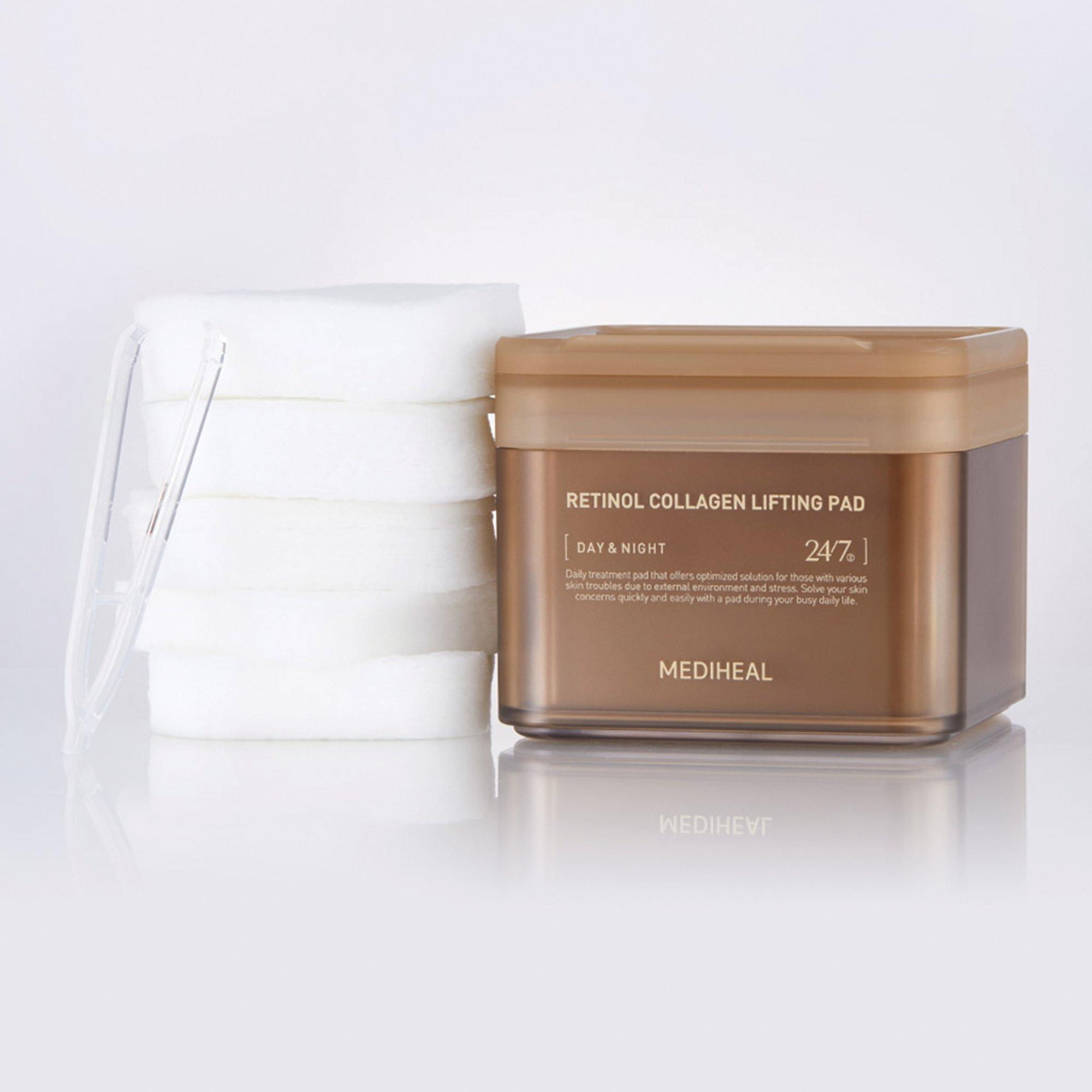 MEDIHEAL Retinol Collagen Lifting Pad lifts and renews lackluster, sagging skin and improves the appearance of fine lines and wrinkles. Powerhouse age-defiers Retinol and Collagen create a wrinkle-filling effect, giving you firmer, smoother looking skin.
