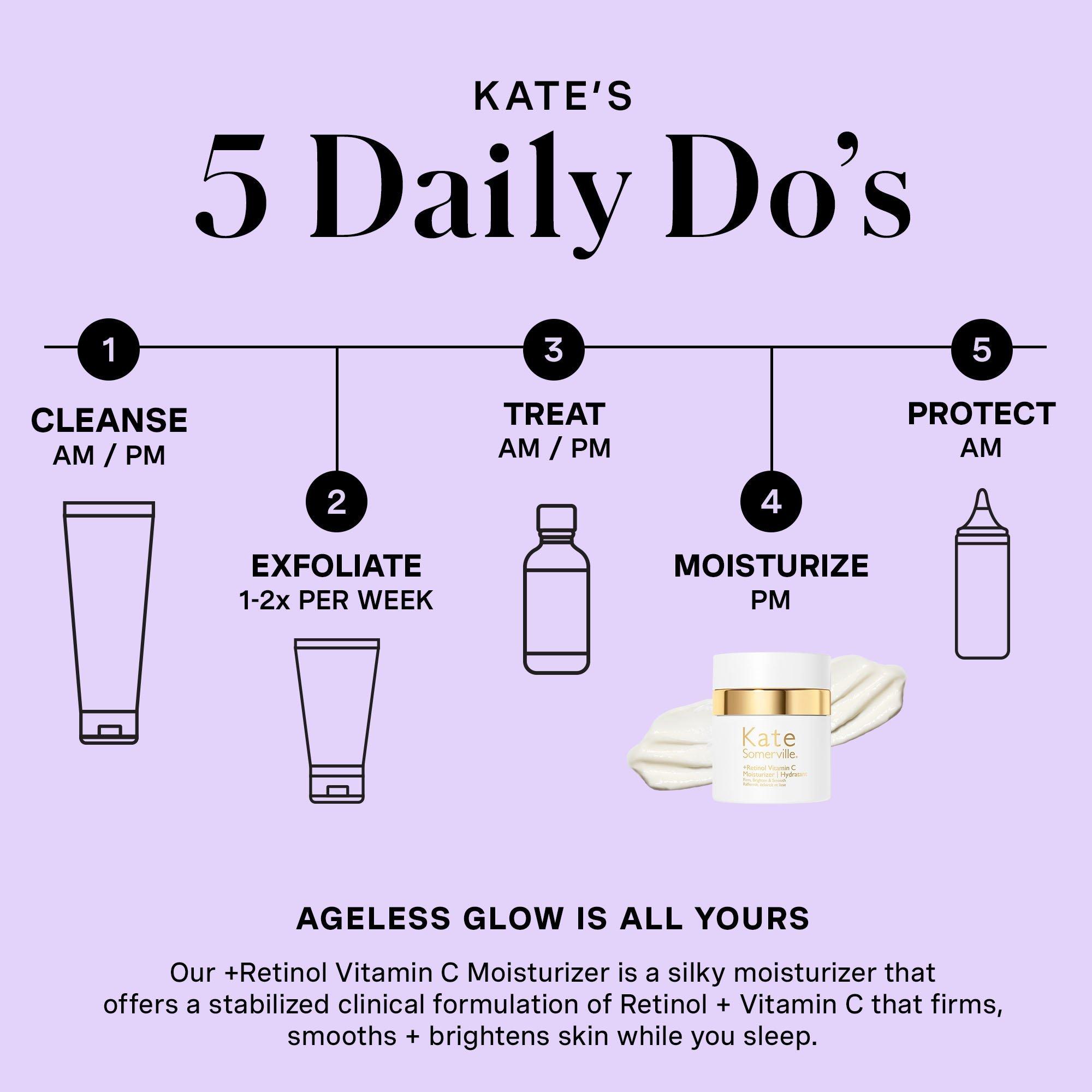 Step into your most radiant and healthy-looking complexion with Kate Somerville's lightweight and luxe +Retinol Vitamin C Moisturizer. This transformative turnaround cream features a clinical-grade formulation of ageless skin superstars Retinol and Vitamin C to nourish skin all night long.