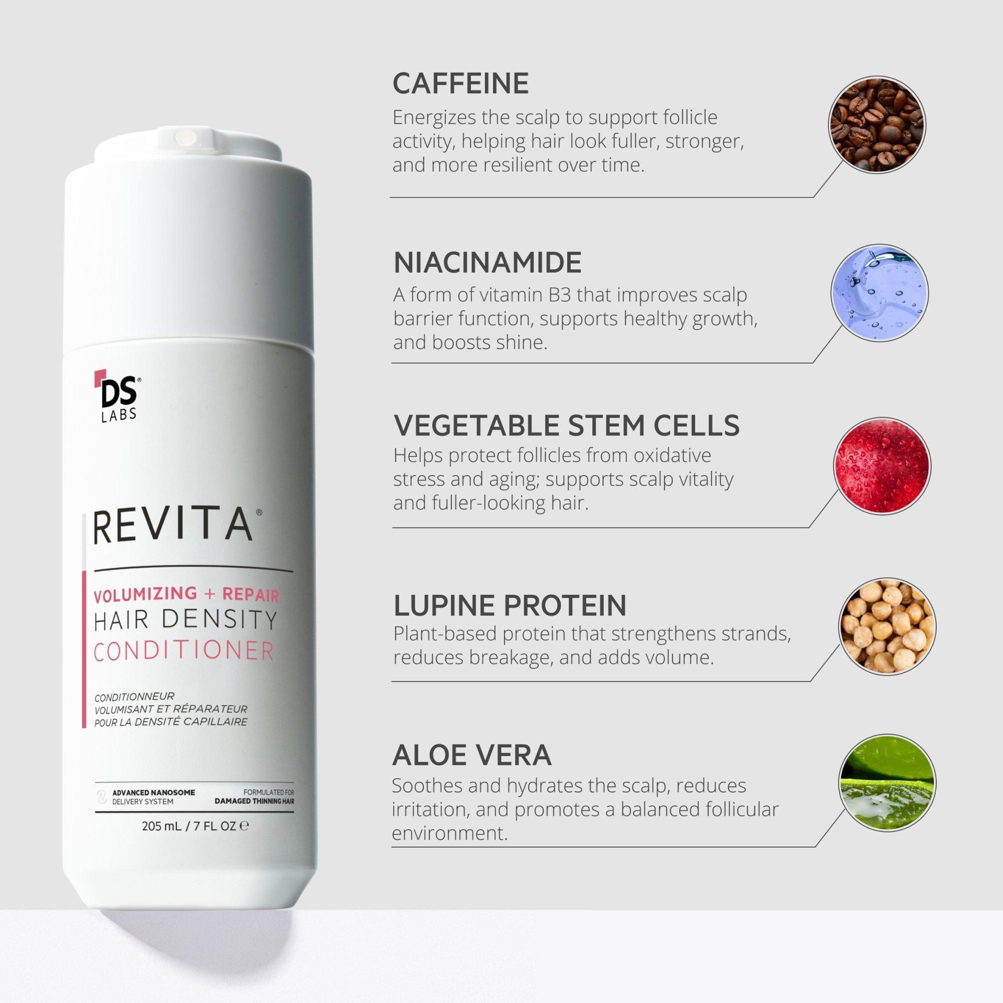 Revita® Volumizing Kit combines a density-boosting shampoo and strengthening conditioner to fight thinning, breakage, and dullness. Together they deliver fuller, shinier, healthier-looking hair.