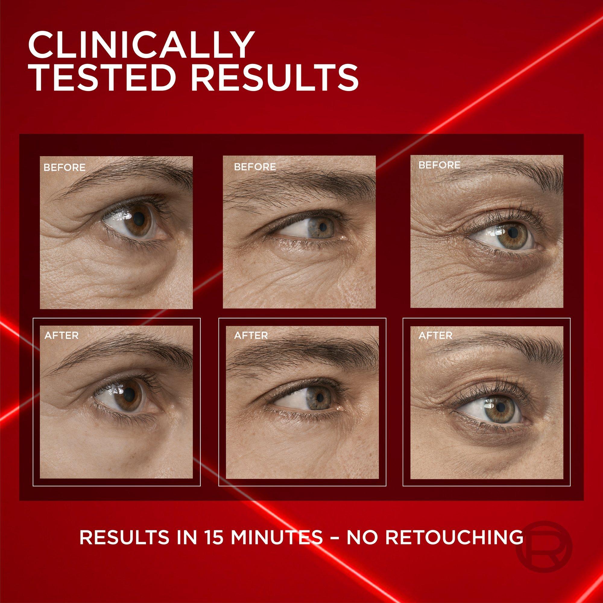 L'Oréal Paris Revitalift Triple Power Eye Bag Instant Eraser delivers instant visible results, tightening, firming, and smoothing eye bags, wrinkles, and crows feet up to 8 hrs.