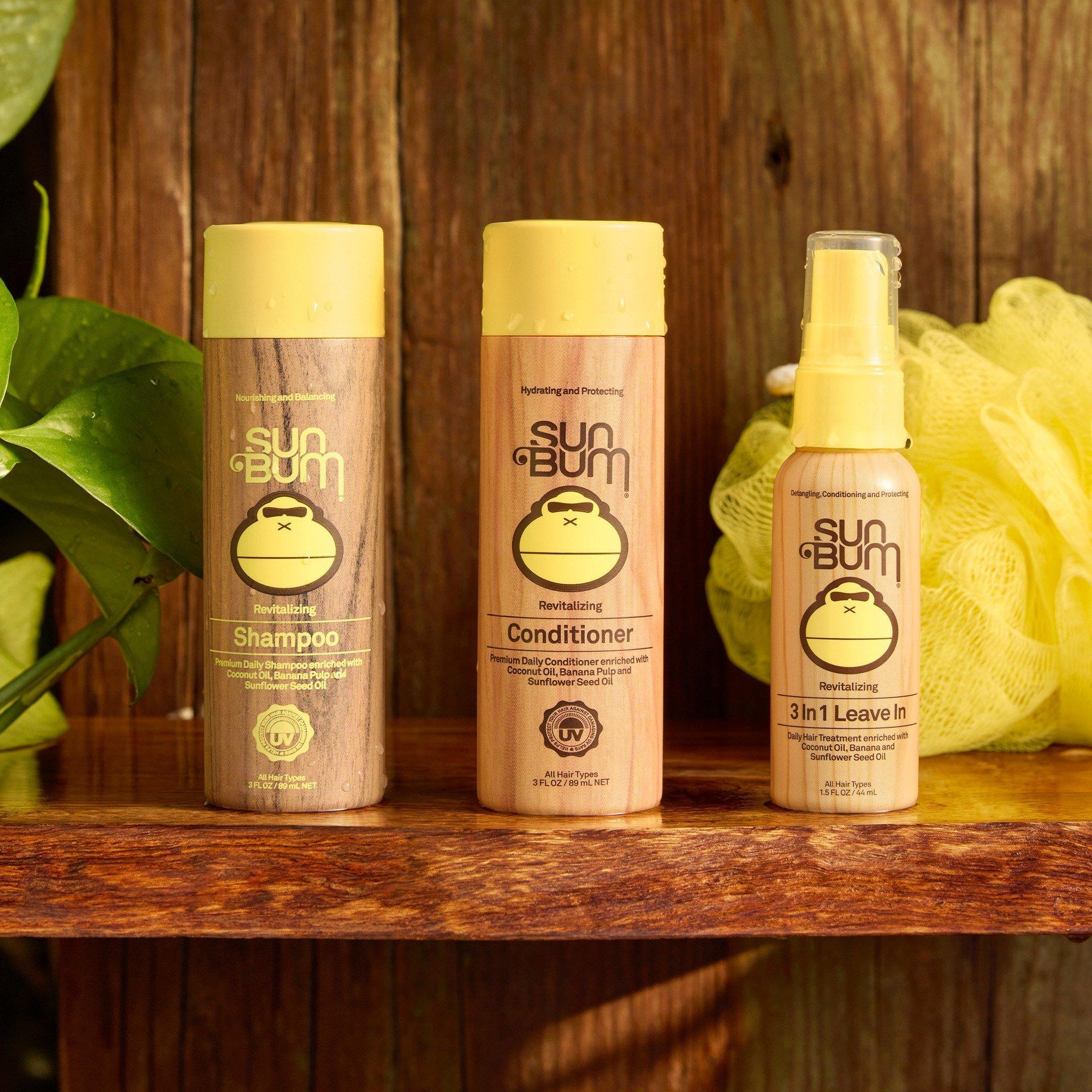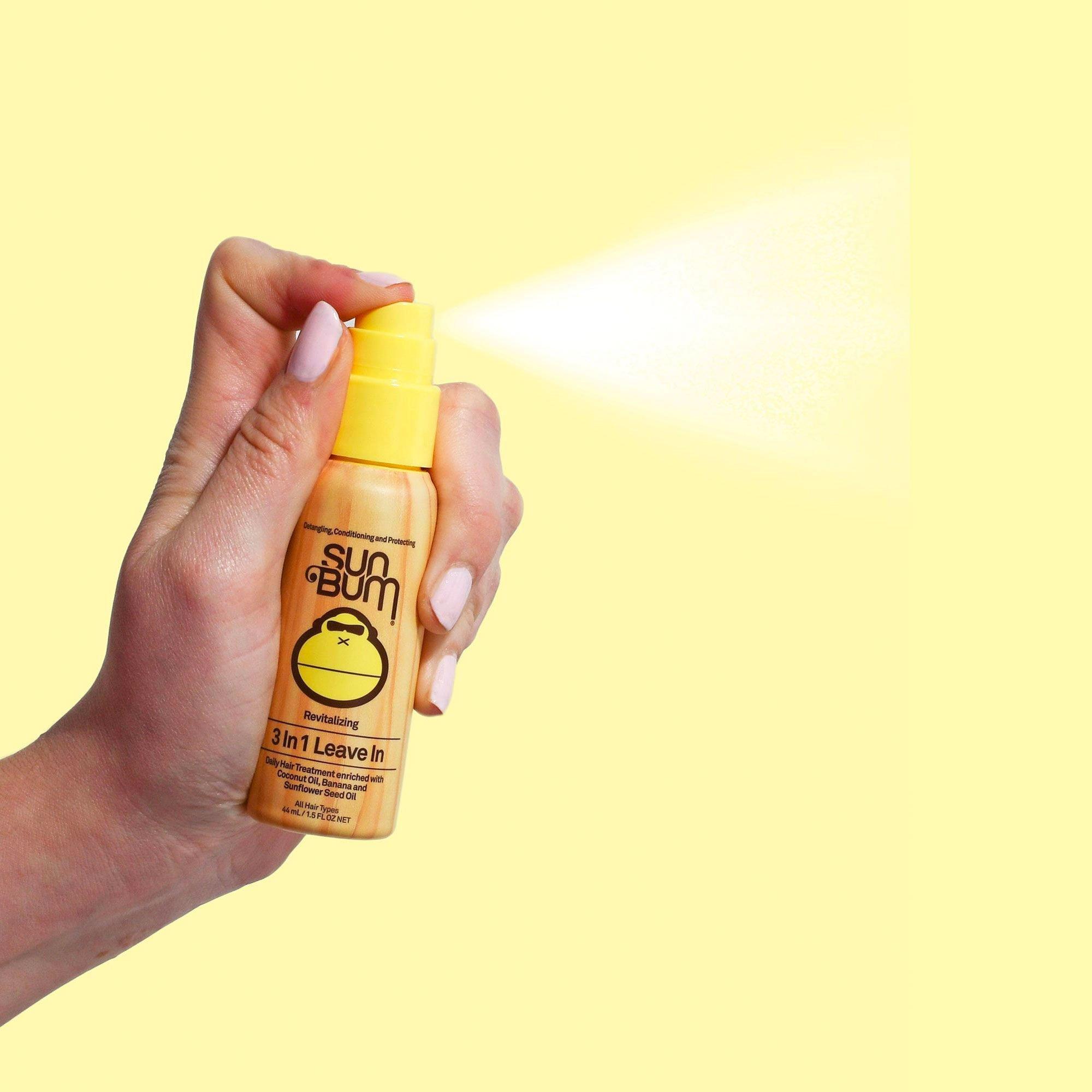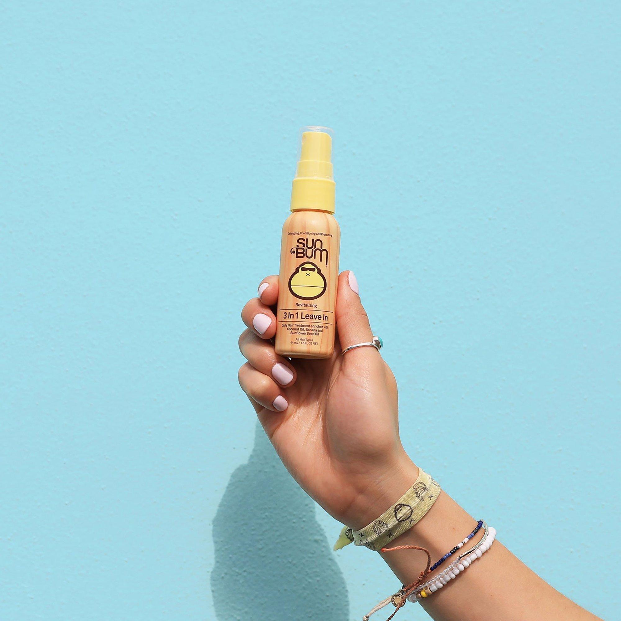 Sun Bum's Revitalizing 3 in 1 Leave In is specifically formulated to detangle, condition, and protect hair while enhancing overall body and shine. This special blend also helps protect against breakage, frizz, and color-fading, leaving hair silky smooth.