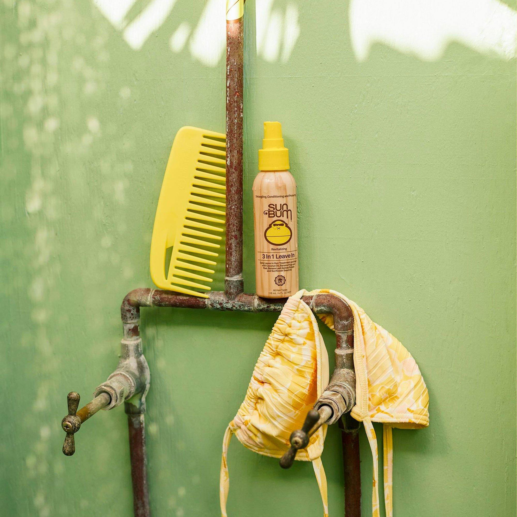 Sun Bum's Revitalizing 3 in 1 Leave In is specifically formulated to detangle, condition, and protect hair while enhancing overall body and shine. This special blend also helps protect against breakage, frizz, and color-fading, leaving hair silky smooth.