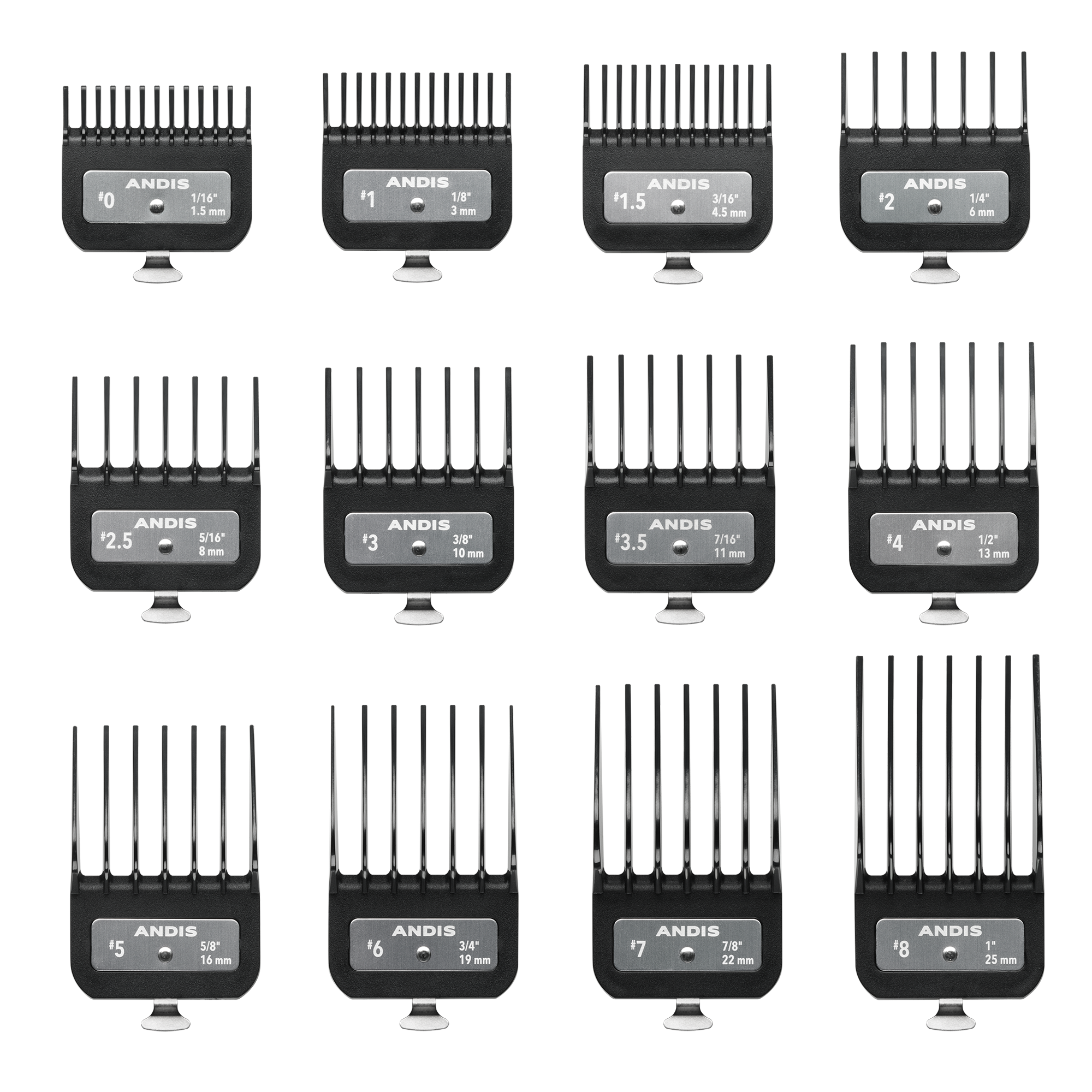 • 12 Premium Metal Clip Attachment Combs
