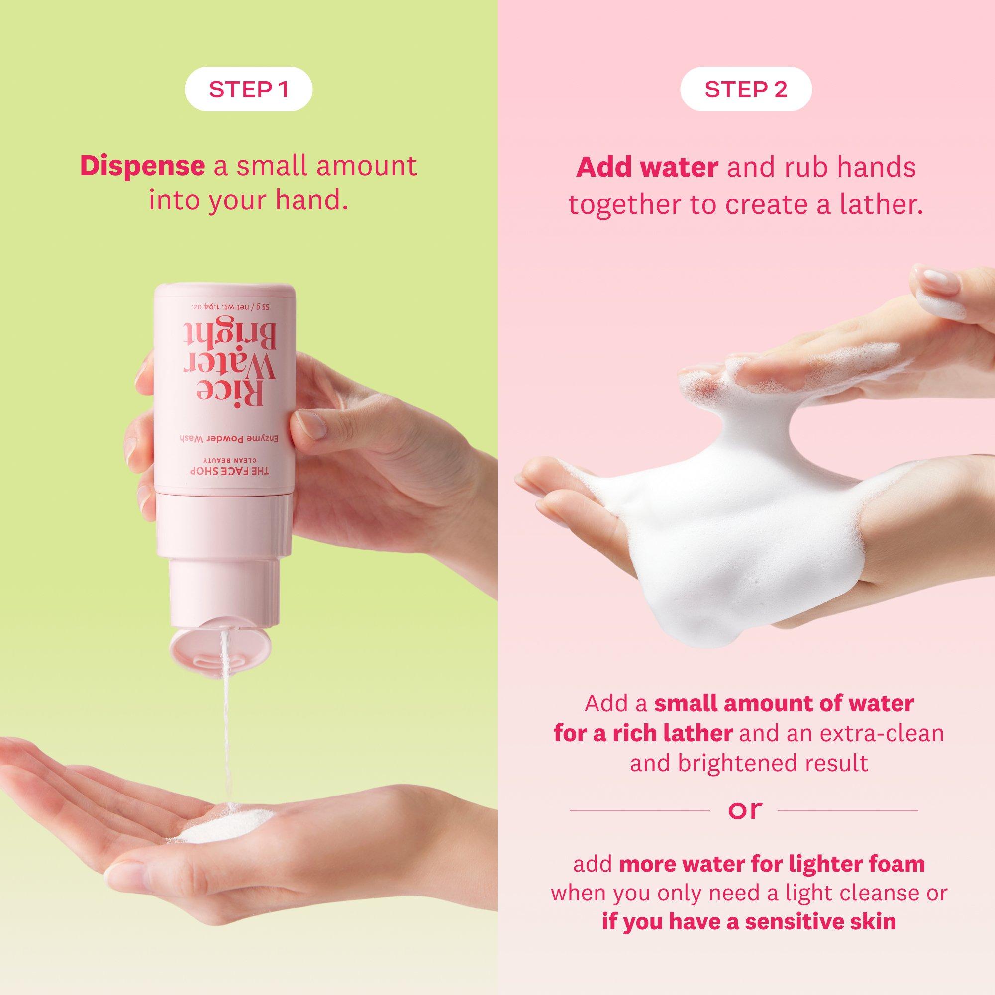 Rice water-infused powder-to-foam cleansing wash with plant-derived enzymes provides gentle exfoliation to reveal visibly softer, smoother, brighter looking skin.