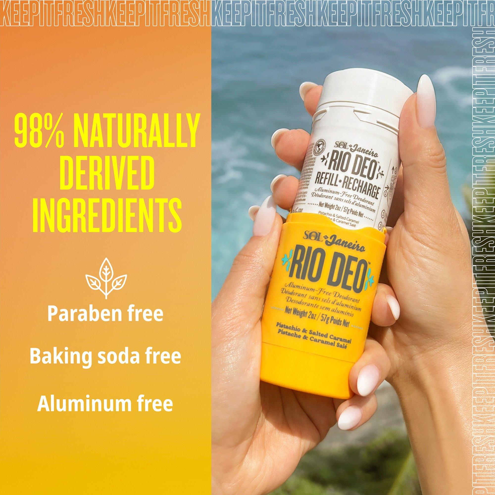 Sol de Janeiro's Rio Deo Aluminum-Free Refillable Deodorant Cheirosa 62 is an aluminum-free and baking soda-free deodorant formulated with the iconic Cheirosa 62 fragrance.
