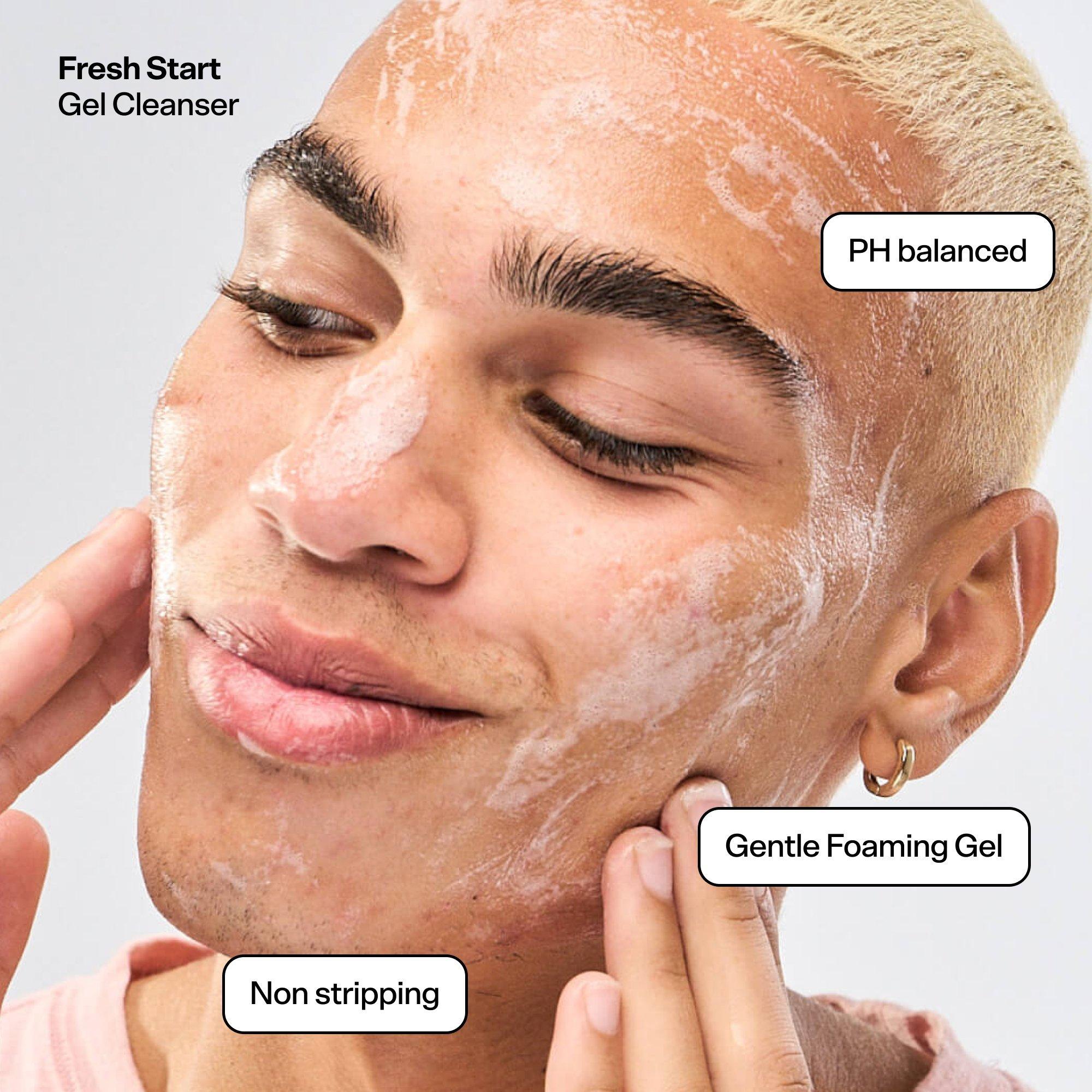 Begin by applying 1-2 pumps of Fresh Start to damp skin. Gently massage into a lather, rinse with water, and pat dry. Follow with one pump of Day Dream and allow to absorb for 1 minute. Finish with 1-2 pumps of Cloud Surf and apply evenly. For daytime, top it all off with a SPF for sun protection.