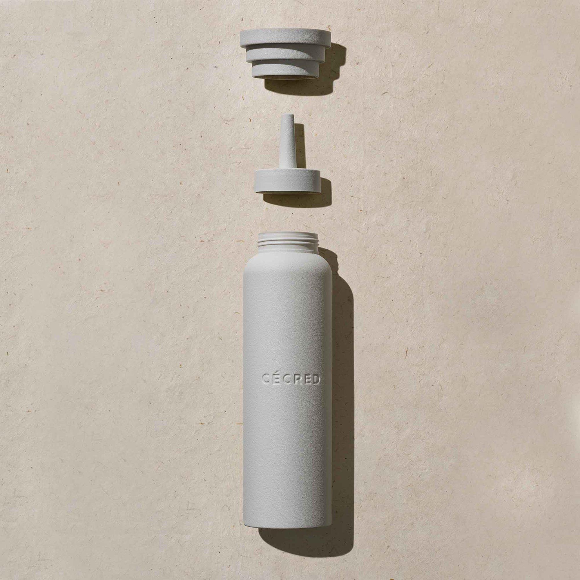 One-time purchase reusable bottle designed for mixing and pouring the Cécred Fermented Rice \& Rose Protein Ritual (sold separately).
