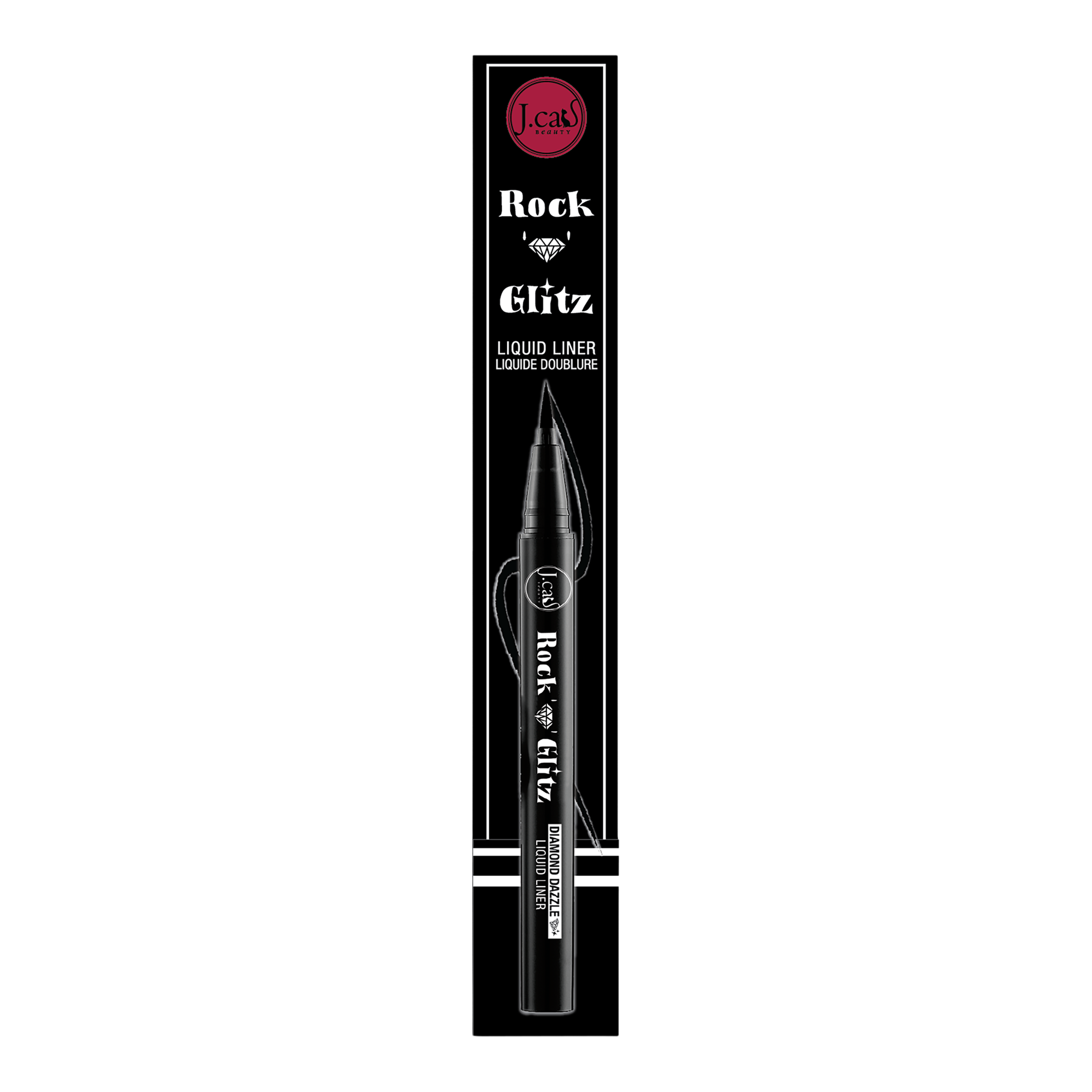 J.Cat Beauty Rock 'n' Glitz Liquid Eyeliner has a diamond dazzle effect. It is a quick drying, precision liner that doesn't smudge or feather.