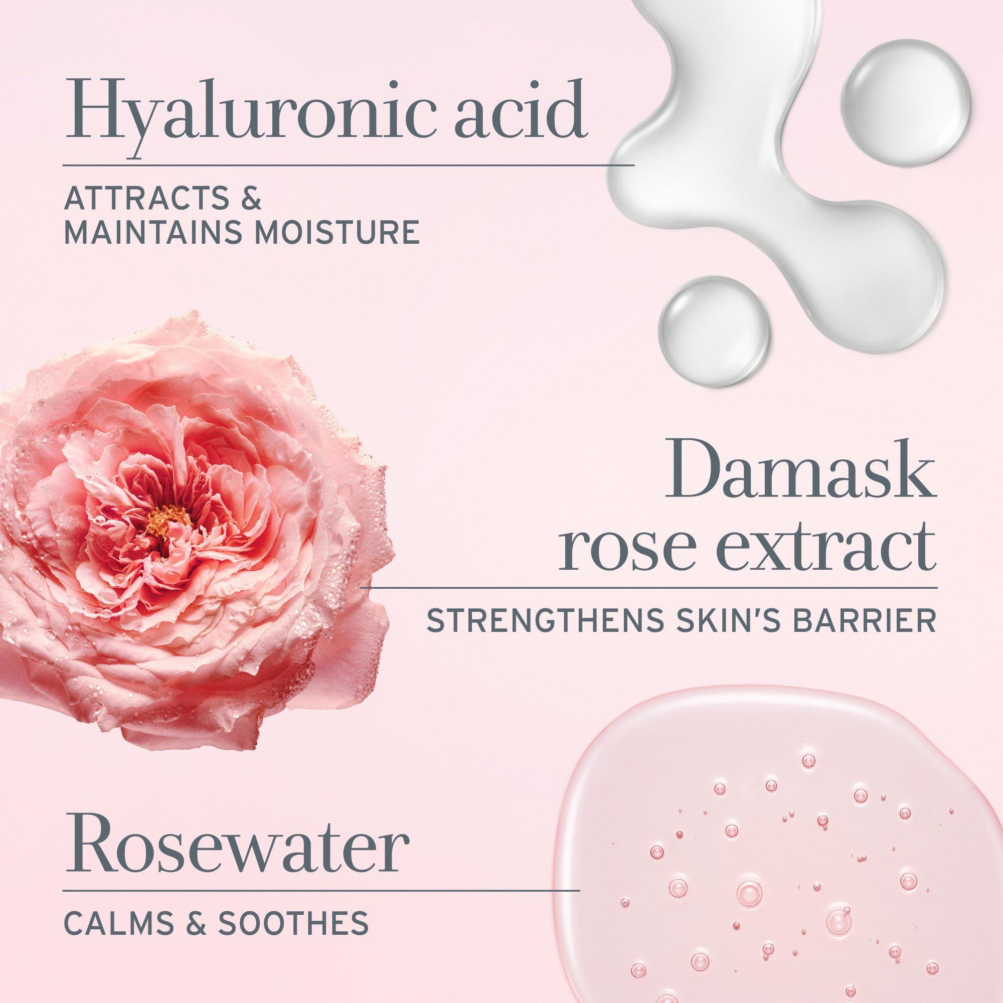 • Damask rose extract hydrates, smoothes, and helps strengthen the skin's barrier