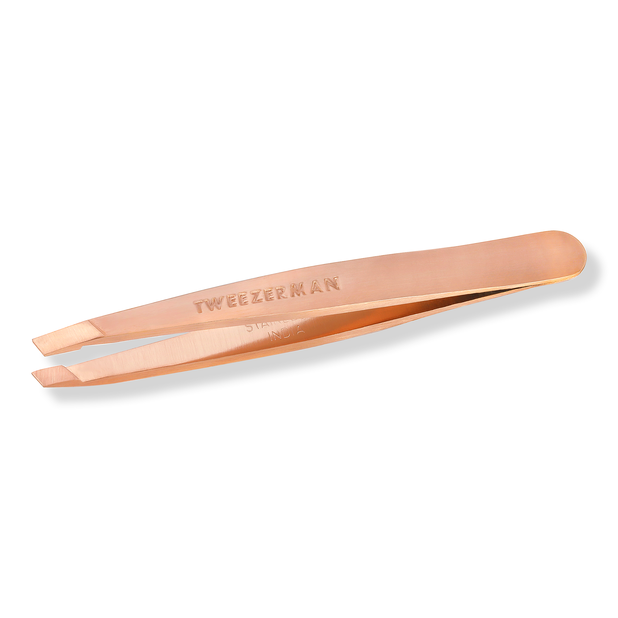 Mini version of Tweezerman award-winning slant tweezer. Famous for its precision, the Rose Gold Mini Slant Tweezer features perfectly aligned hand-filed tips for expert brow shaping. Perfect for travel or on-the-go touch ups.
