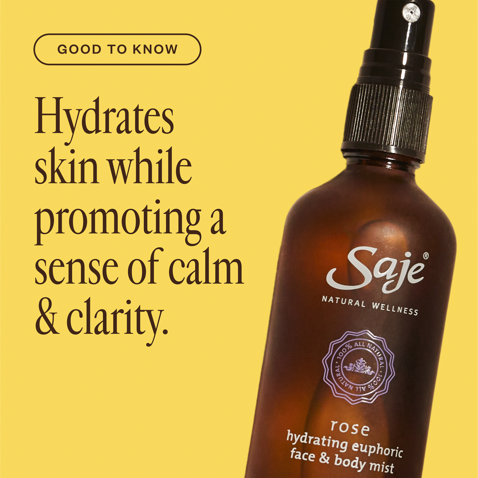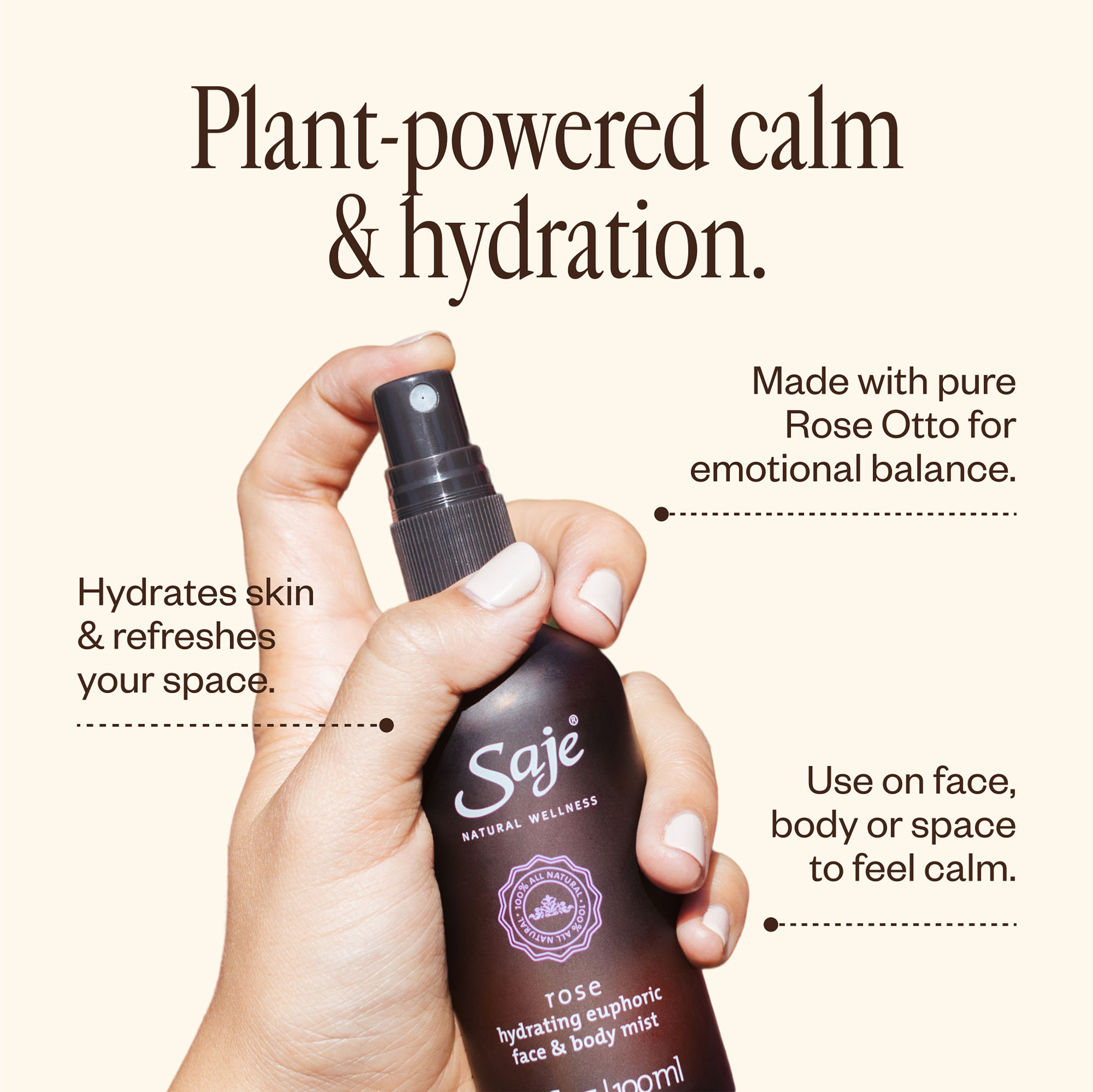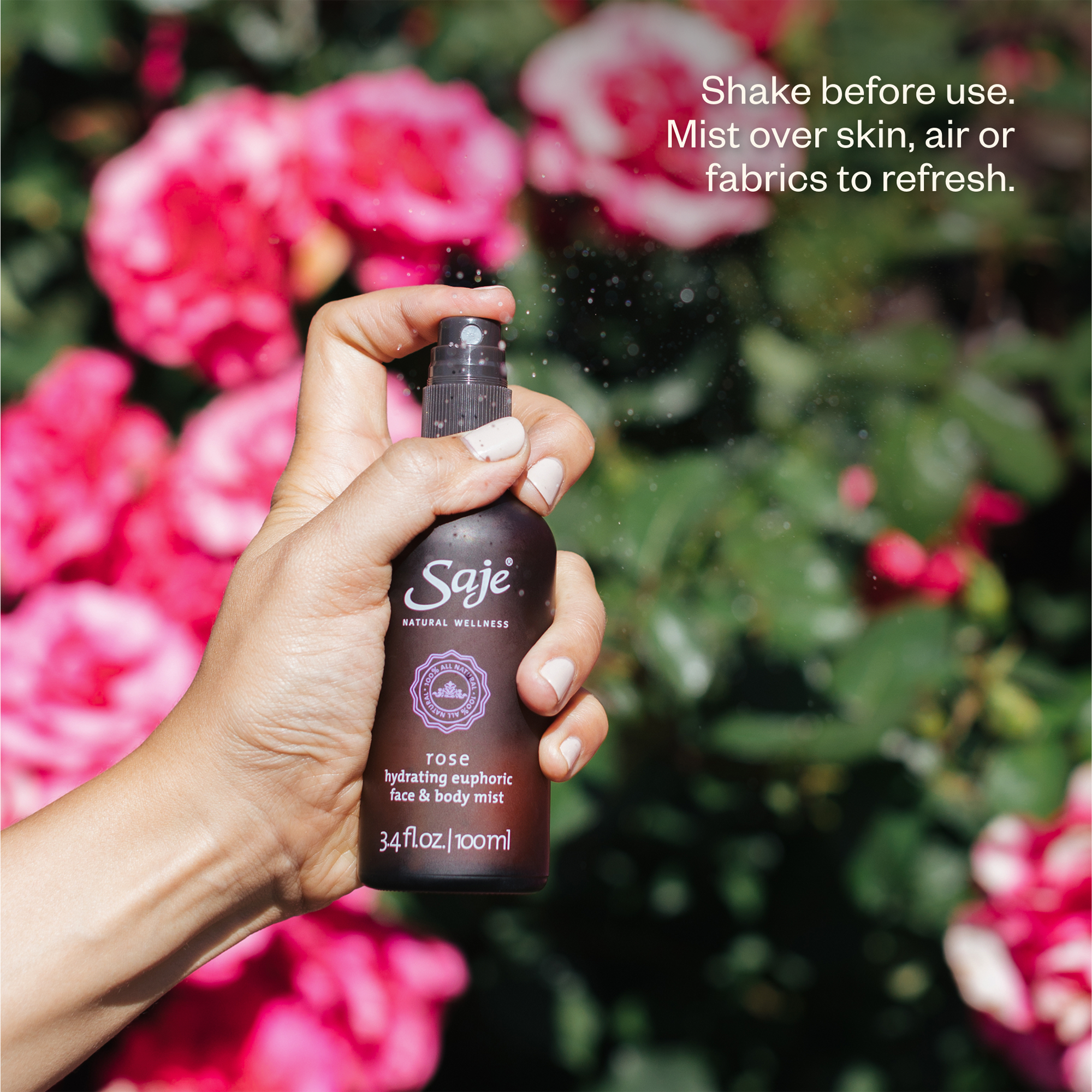 Saje Natural Wellness's Rose Hydrating Euphoric Mist is powered by Rose Otto, one of the world's rarest essential oils known to hydrate skin and uplift senses, naturally.