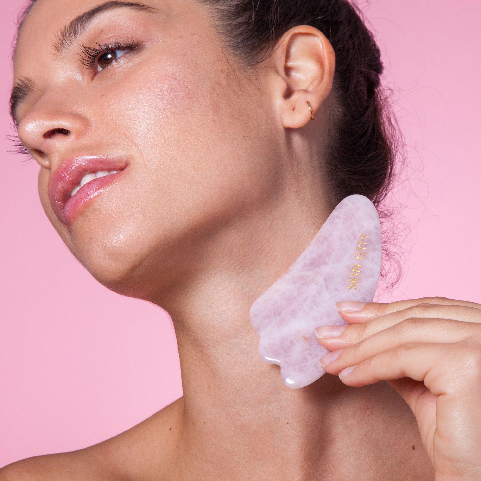 Skin Gym Rose Quartz Gua Sha Sculpty tool is specifically designed to enhance your natural beauty by helping relieve facial tension and making your skin radiant.