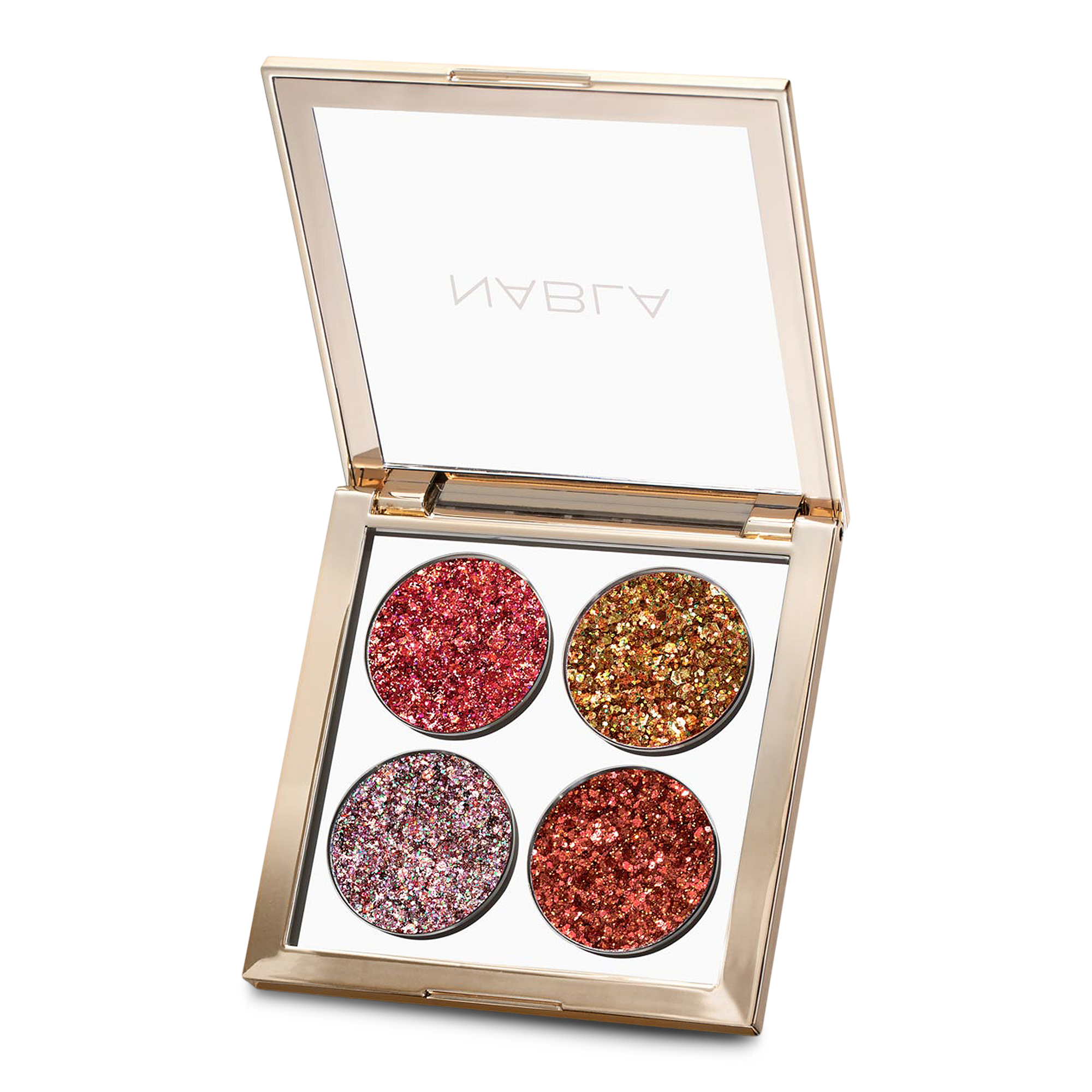 NABLA Ruby Lights Glitter Palette is a quad full of endless magnetic and chameleonic reflects. Light breaks up and turns into hot and precious red, like a treasure chest full of rubies that shine in the dark.
