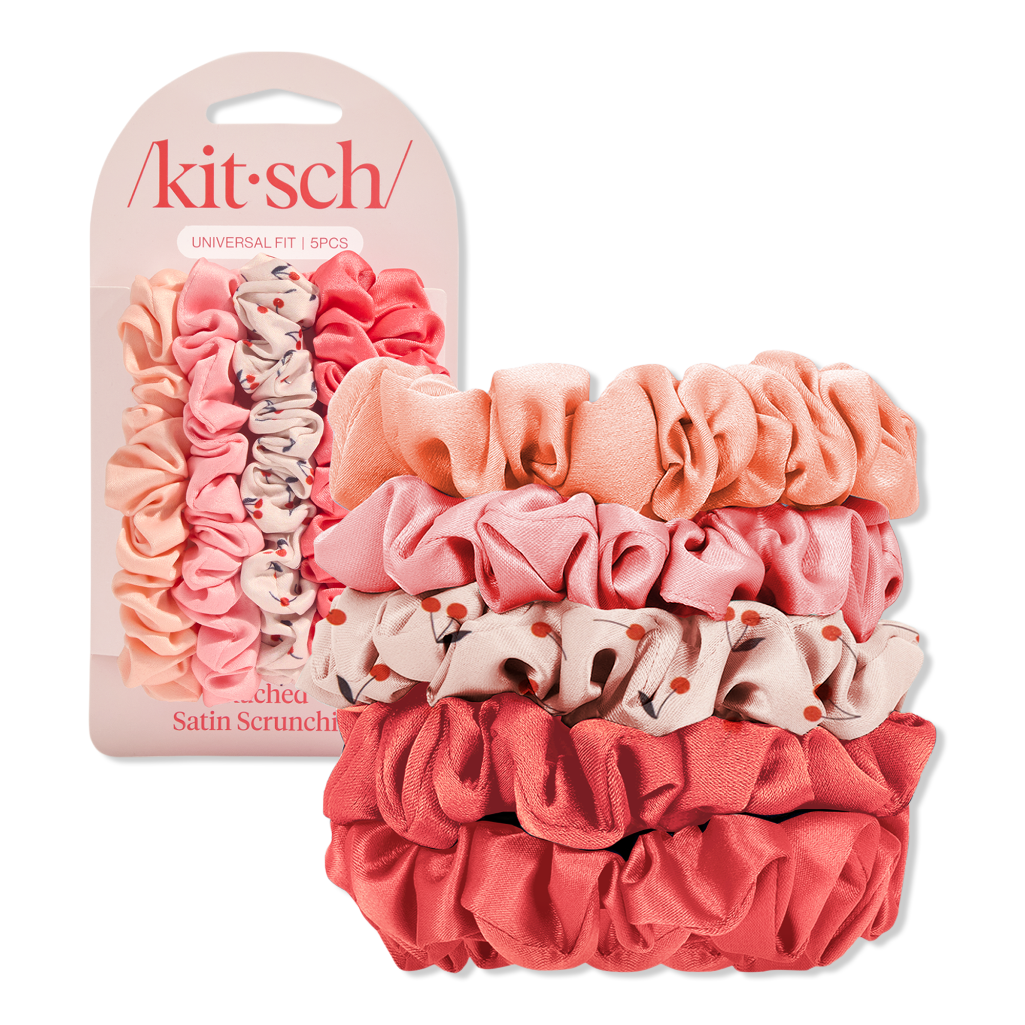 Experience ultimate comfort with Kitsch Satin Hair Scrunchies—these cute cherry-print scrunchies gently hold hair without pulling or tangling, making them perfect to wear while you snooze.