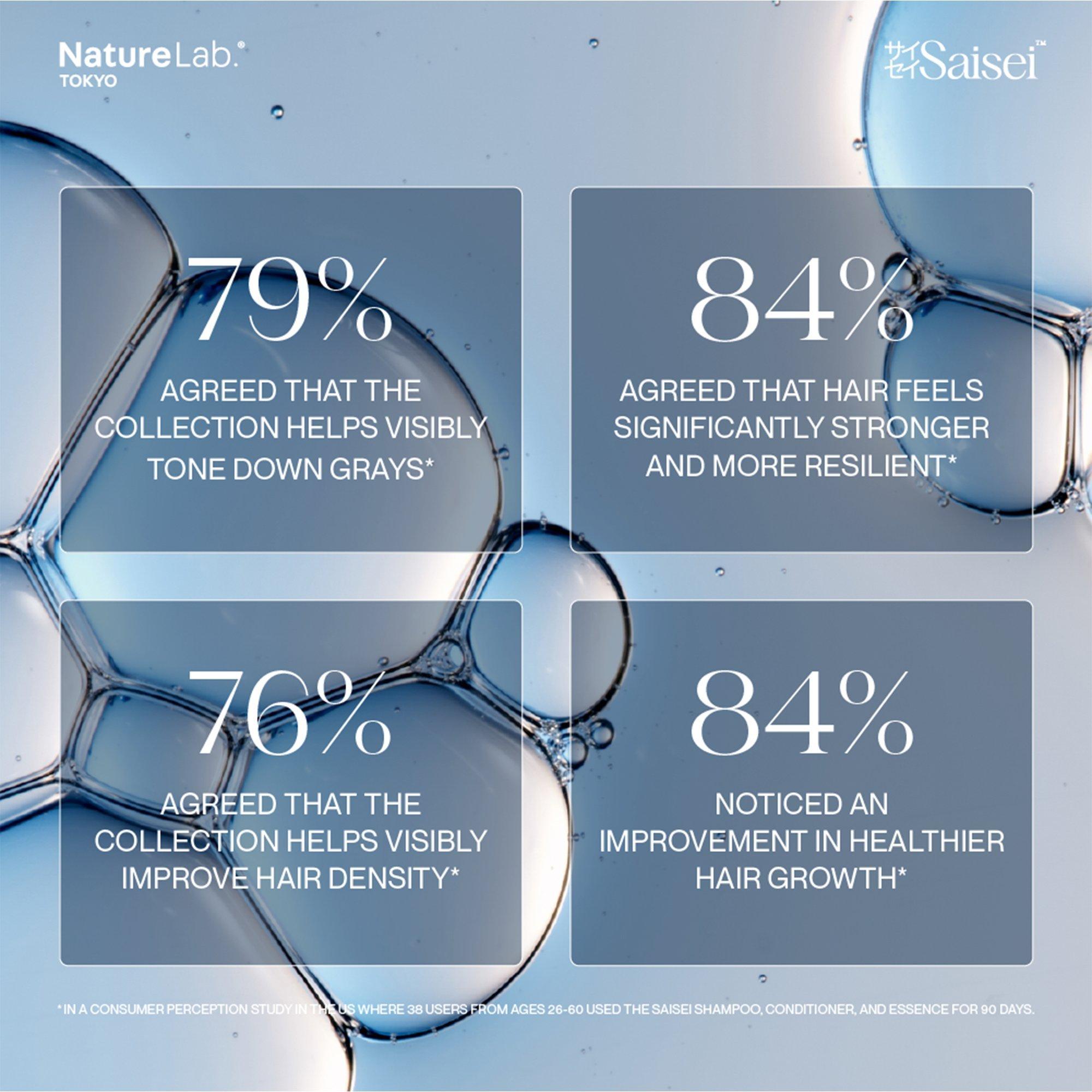 NatureLab.Tokyo's Saisei Biomimetic Peptide Treatment Essence is a daily scalp treatment that combats visible signs of aging, including graying and thinning, and helps delay the onset of gray.