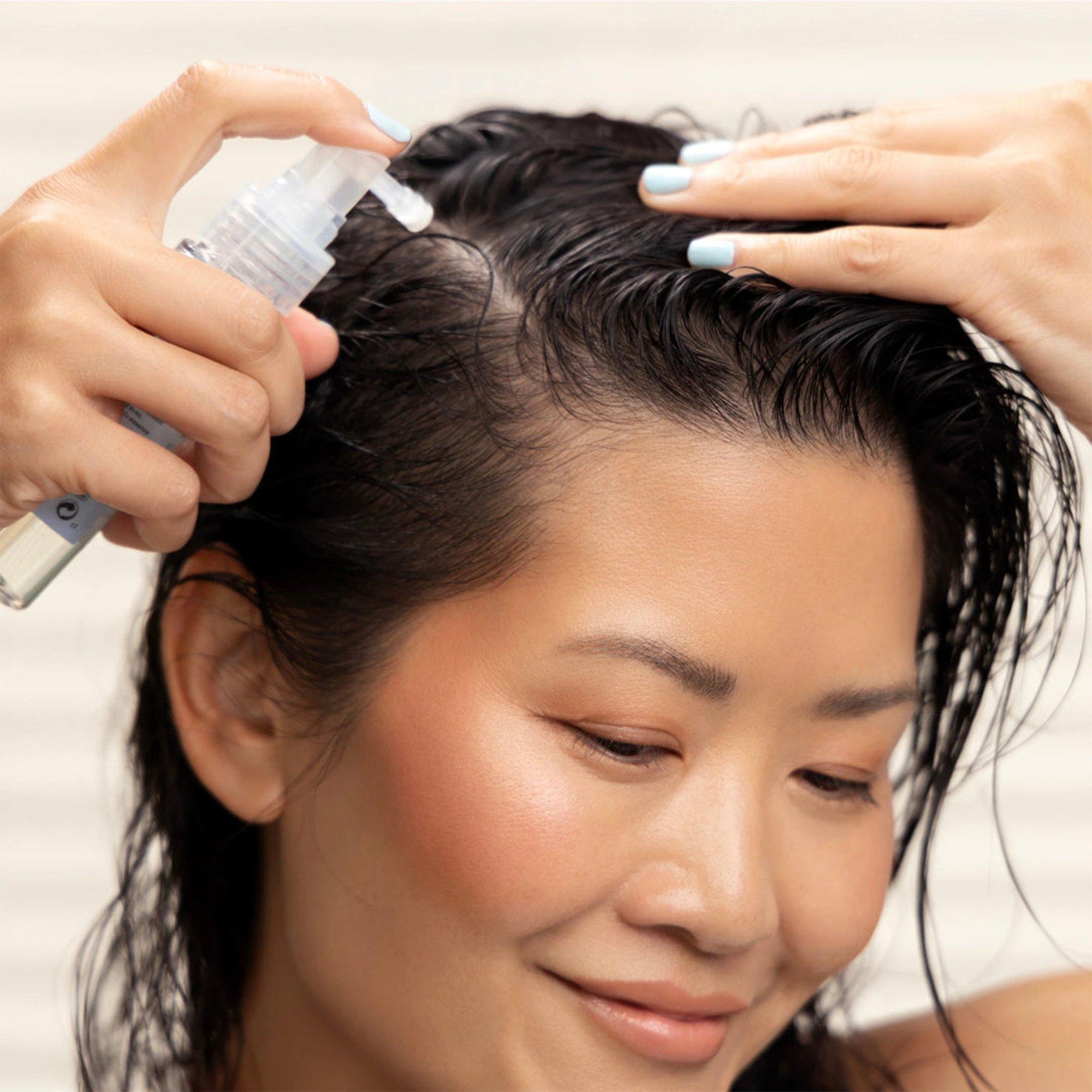 After showering, towel-dry hair and apply the treatment essence directly to the scalp. Massage in and do not rinse out. Reapply treatment essence on no-wash days.