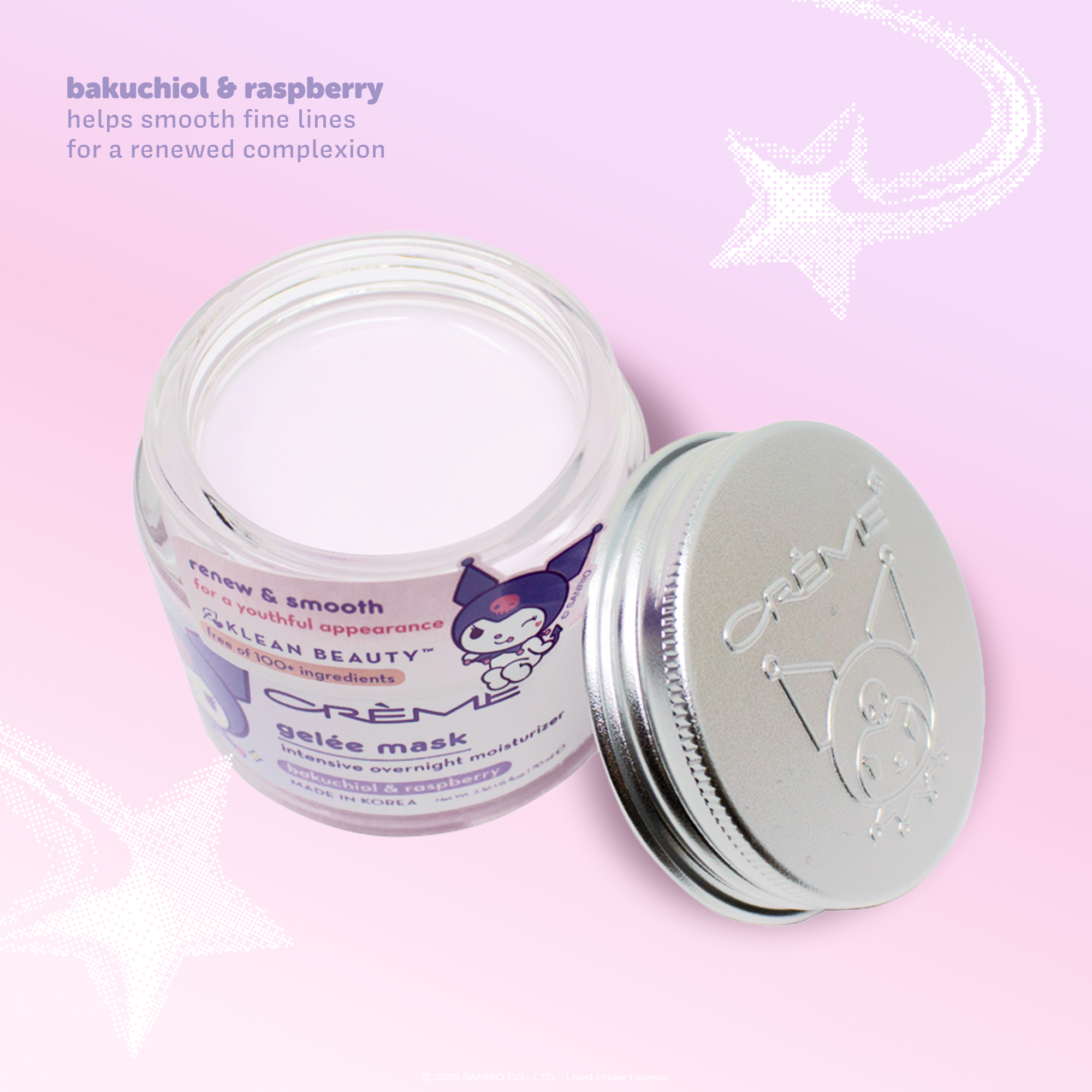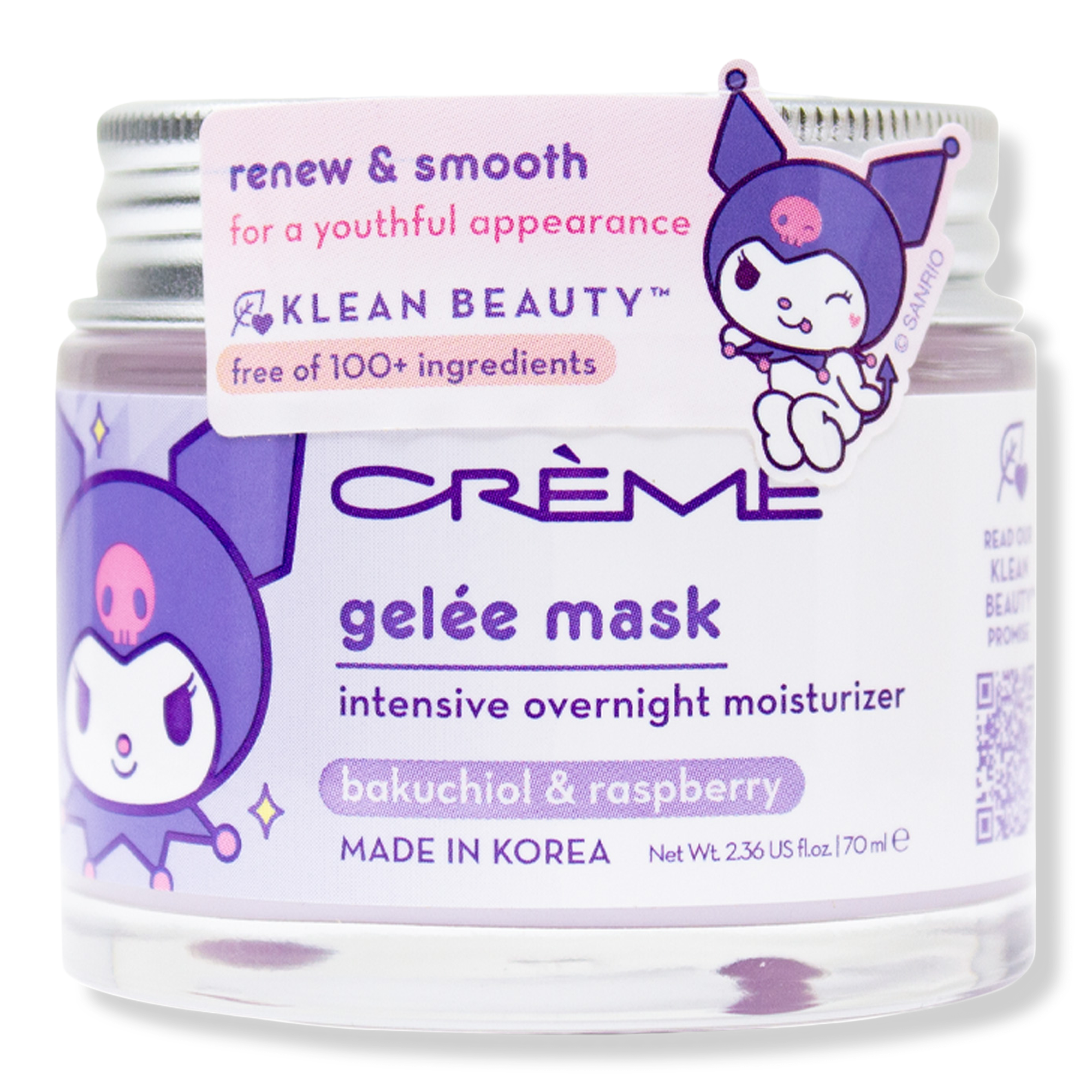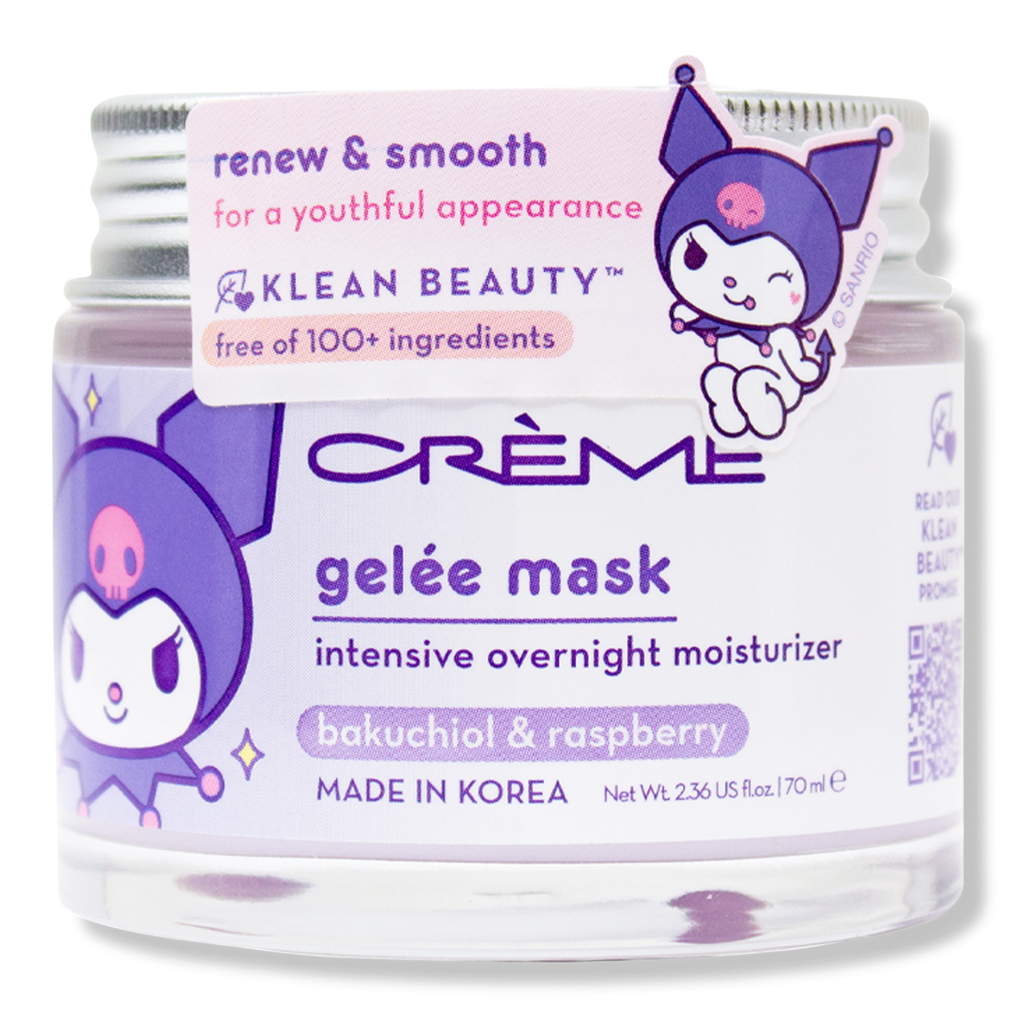 The Crème Shop x Sanrio Kuromi Klean Beauty Gelee Mask is an overnight Gelée Mask that helps smooth fine lines for a renewed complexion.