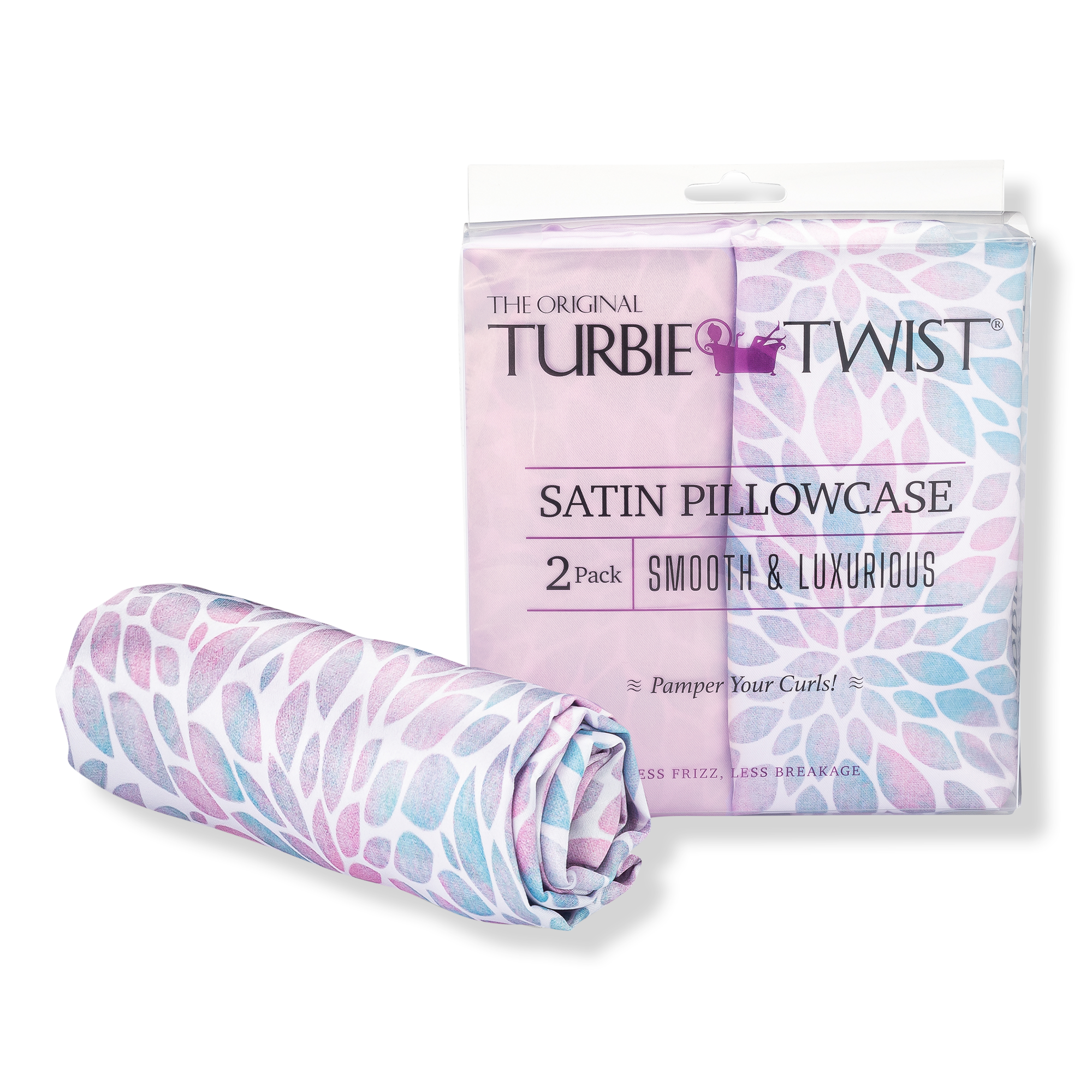 Turbie Twist Satin Pillowcase Set. Say goodbye to bad hair days! Pamper yourself and your curls by sleeping on a soft and luxurious satin pillowcase and wake up to healthier hair