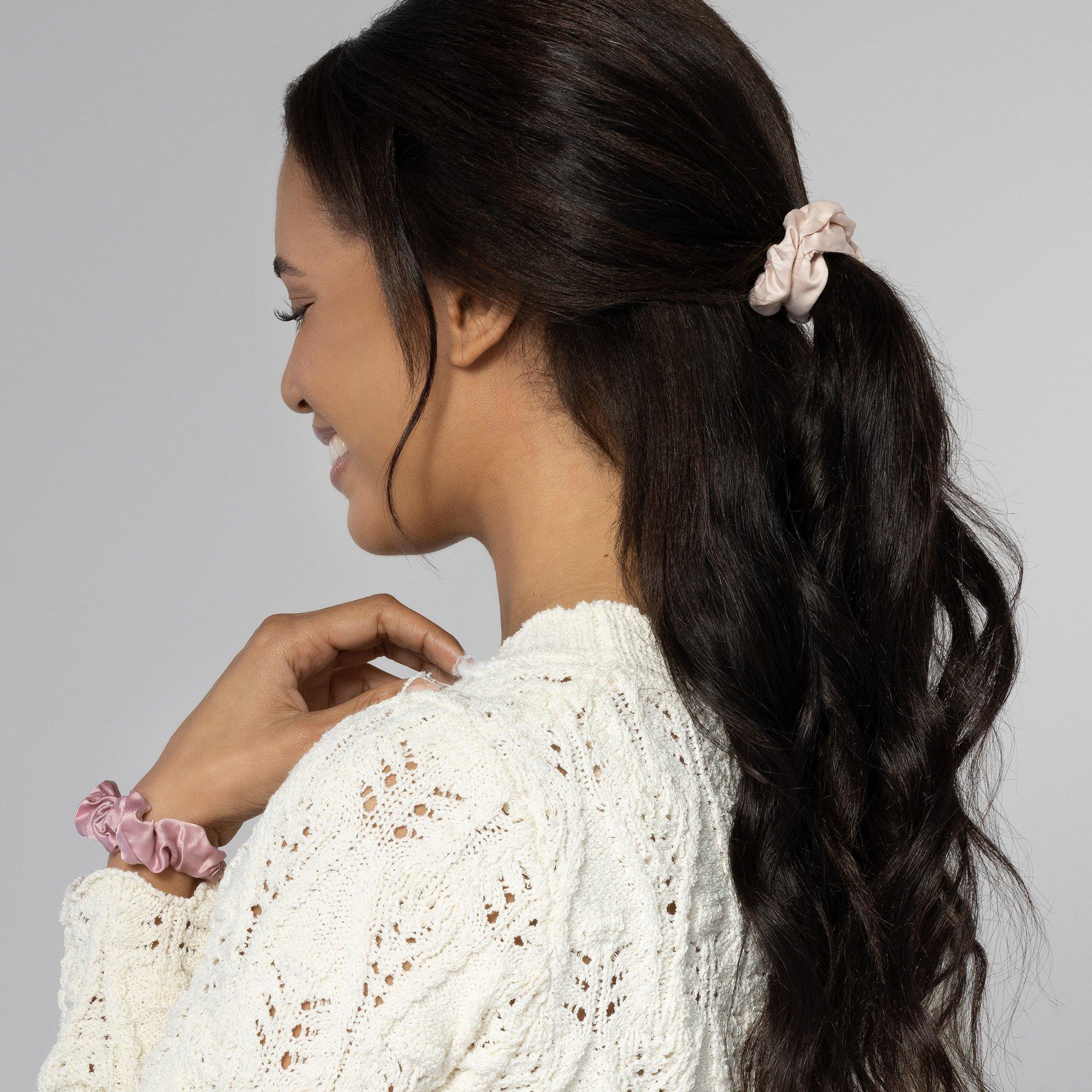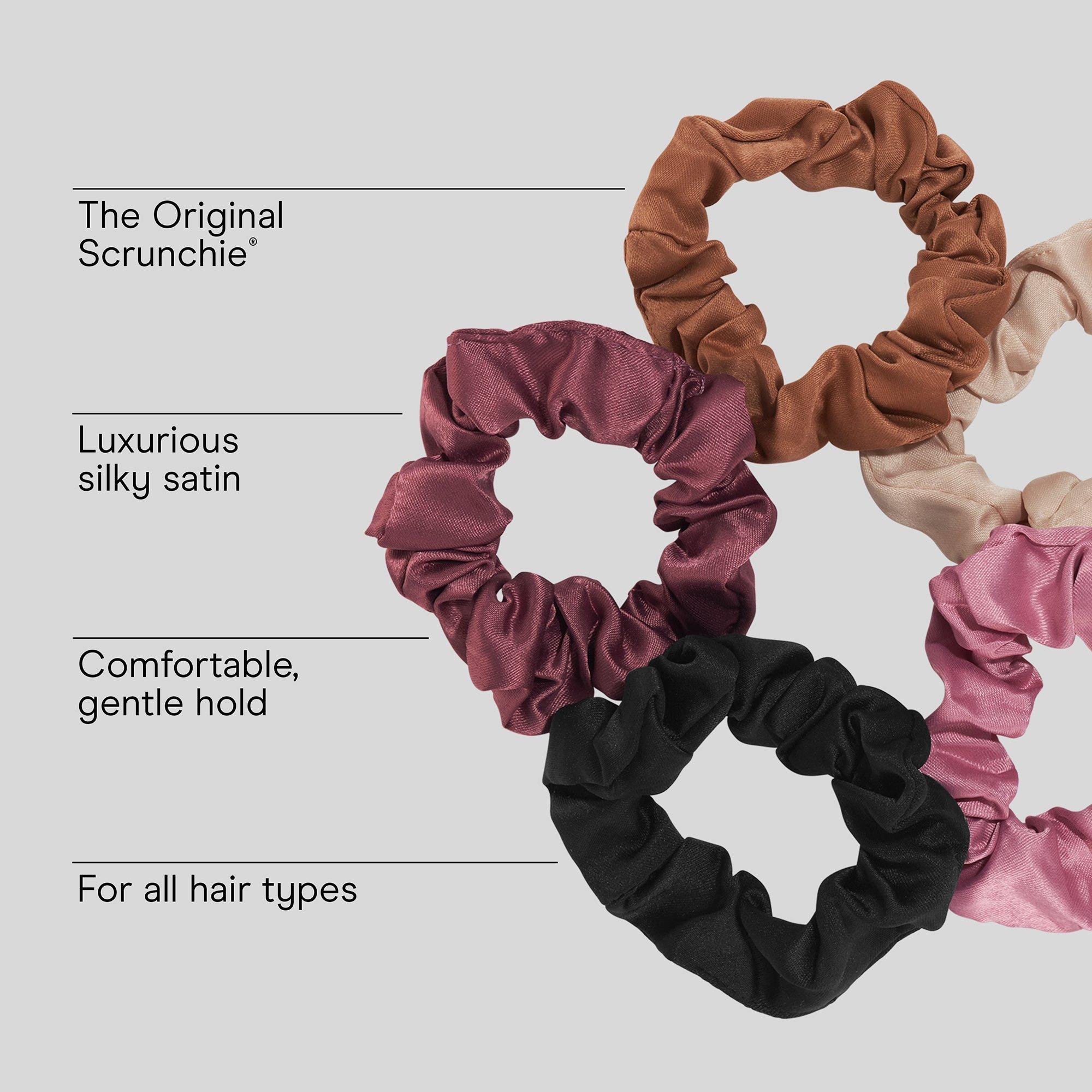 Add a smooth finishing touch to ponytails or buns with Conair Satin Scrunchies. Ultra-soft and comfortable, these scrunchies provide a secure hold designed to help keep hair smooth and dent-free.