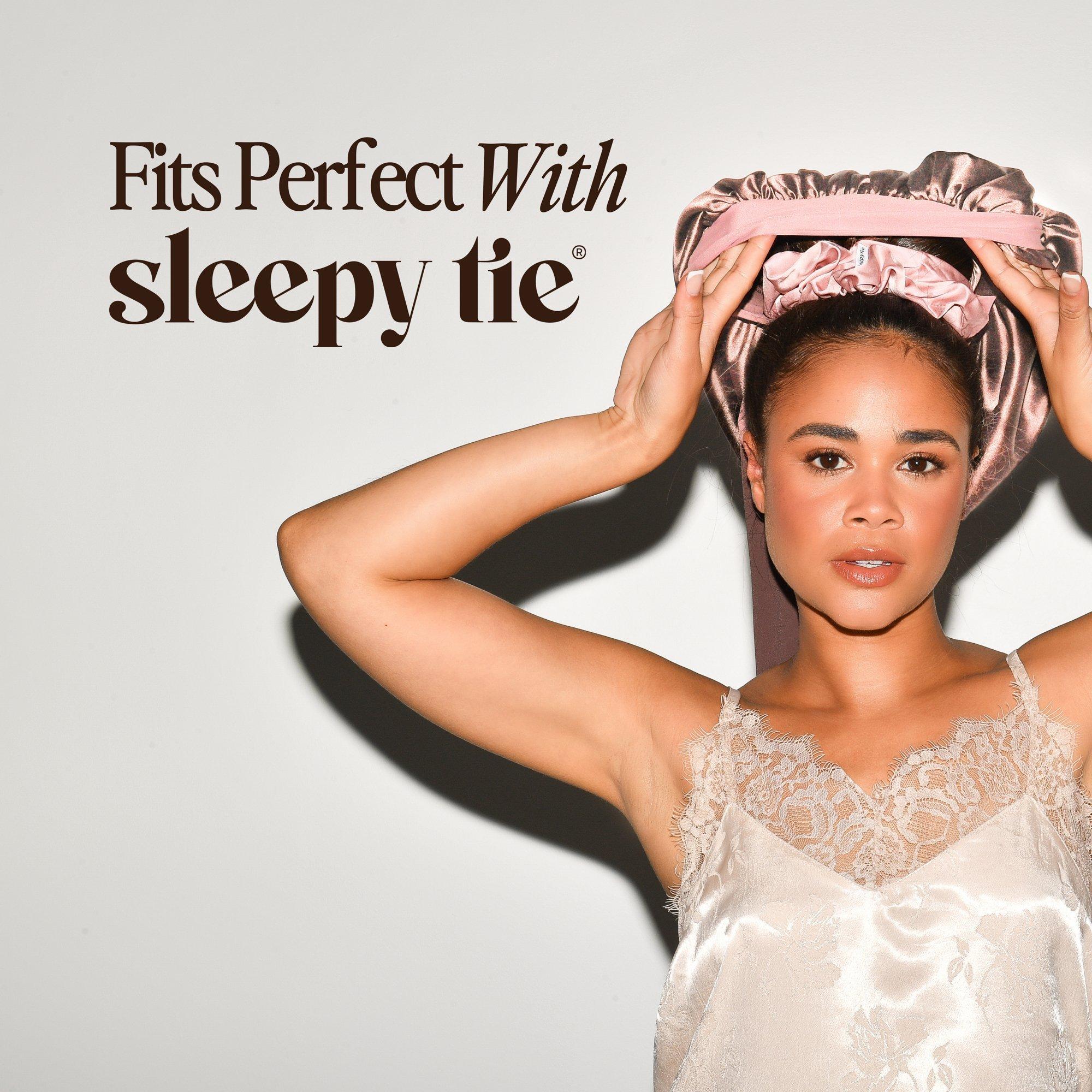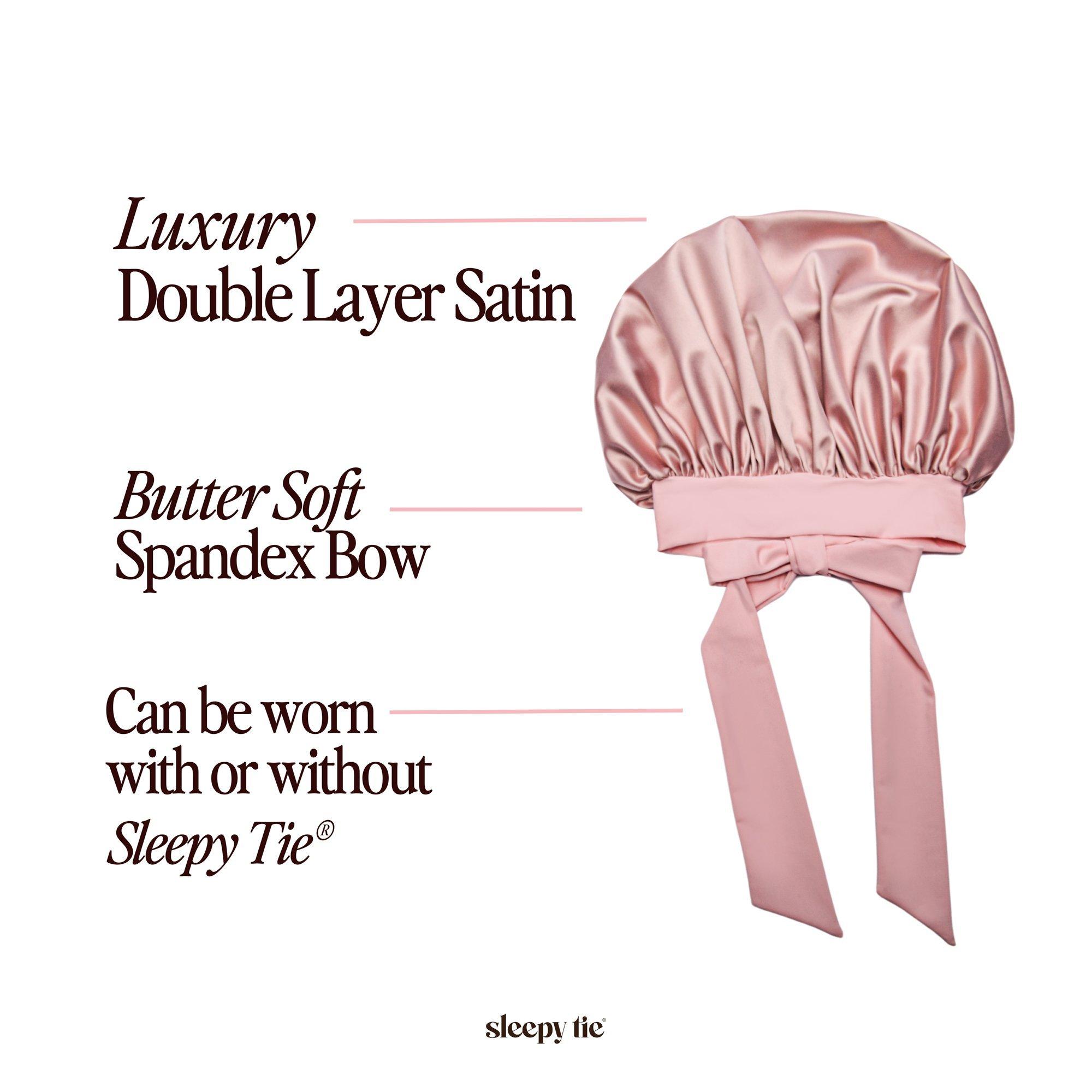Sleepy Tie Satin Sleep LuxeBonnet reduces frizz, minimizes friction, and keeps your style intact overnight. Fits over your Sleepy Tie or without, made with a luxe satin and butter-soft spandex bow.