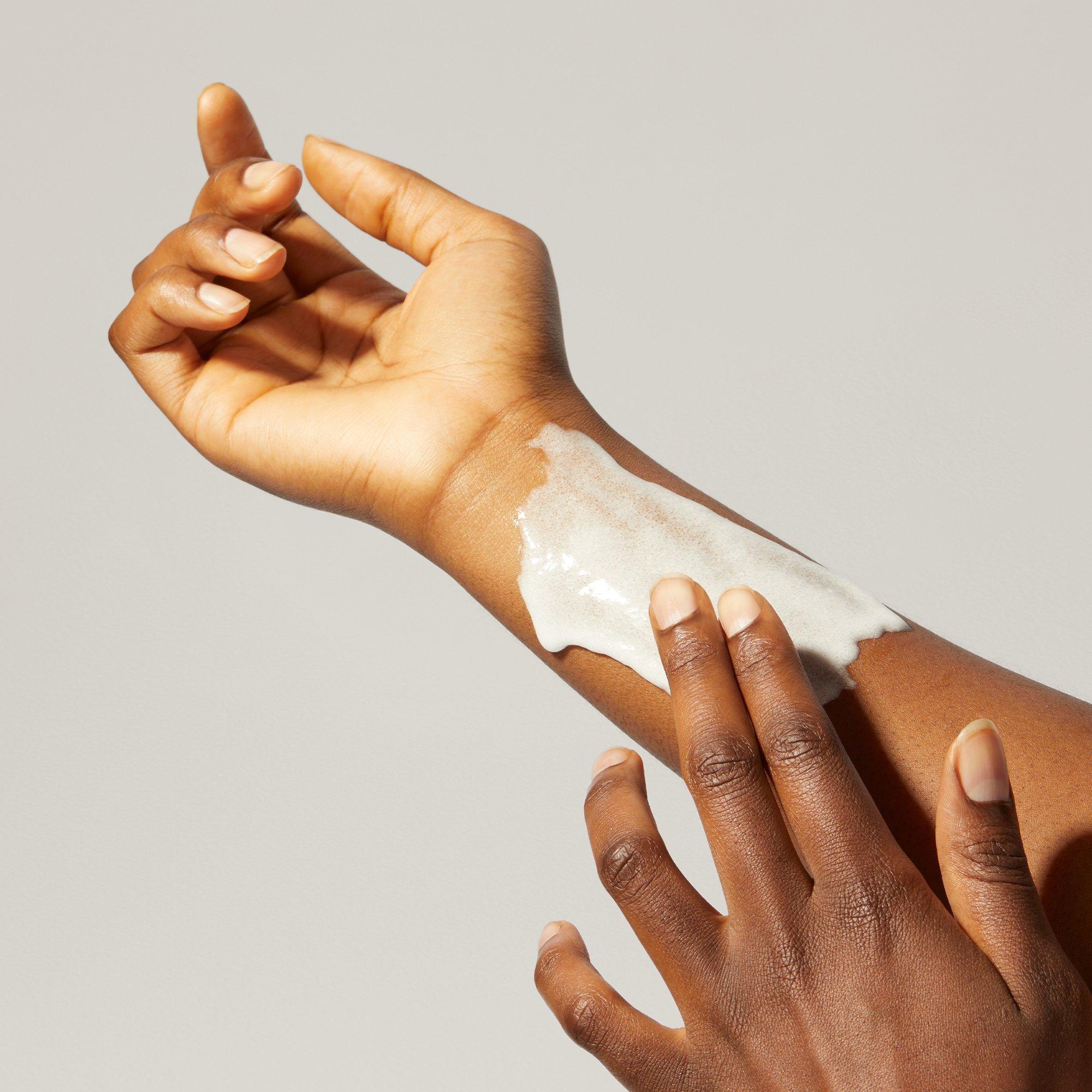 Apply to damp skin or scalp, gently massage in circular motions + rinse.
