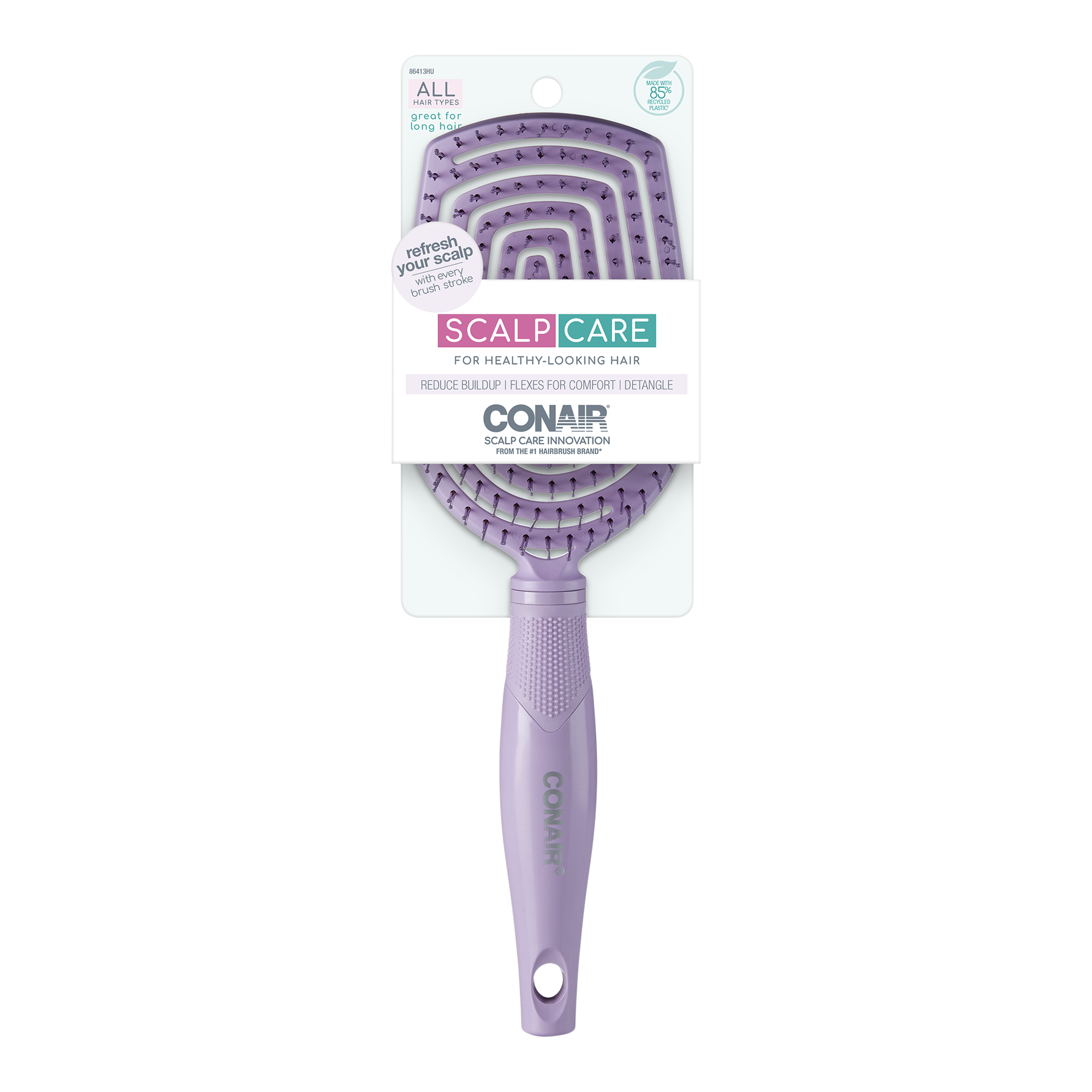 The Conair Scalp Care Flexi Head Paddle Brush features high and low bristles that alternate to gently remove buildup while detangling and massaging.