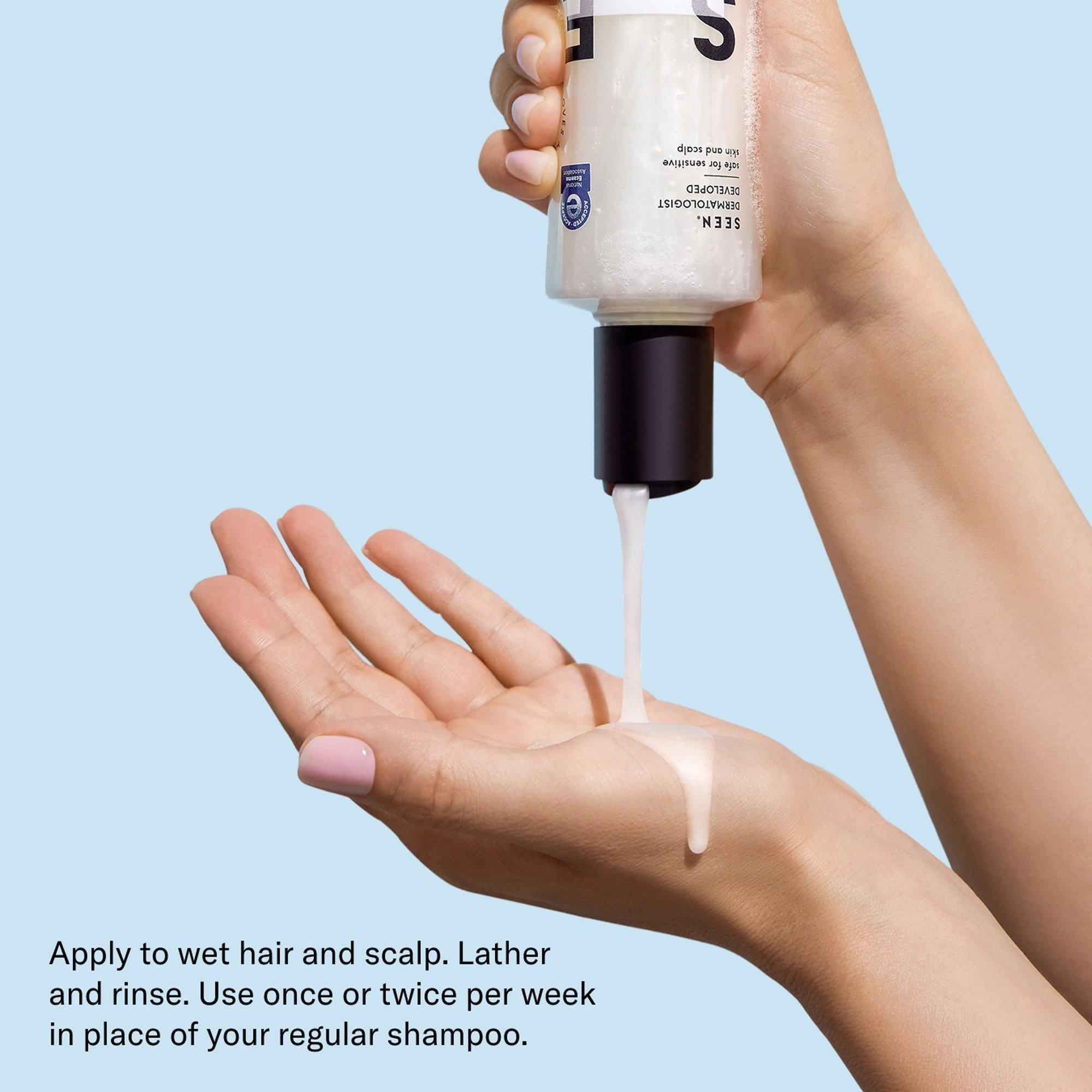 Apply to wet hair and scalp. Lather and rinse. Use once or twice per week in place of your regular shampoo. For best results, follow with SEEN Conditioner or Deeper Conditioner.