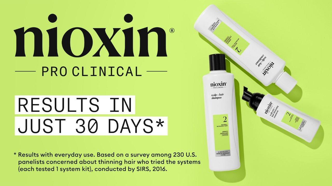 Nioxin Pro Clinical's System Kit 2 is designed for natural, untreated hair with progressed thinning. Clinically and dermatologically tested, the hair thickening treatment nourishes and strengthens each strand of hair from root to tip, resulting in thicker, fuller hair.