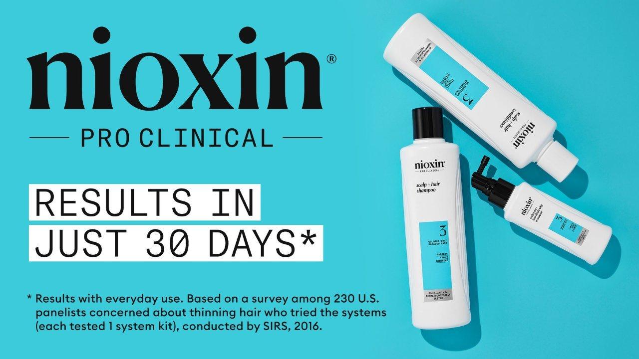 Nioxin Pro Clinical's System Kit 3 is designed for dry, damaged, colored hair with light thinning. Clinically and dermatologically tested, this shampoo nourishes and gently cleanses your hair to prevent against follicle-clogging sebum, resulting in thicker, fuller hair while protecting its' color.