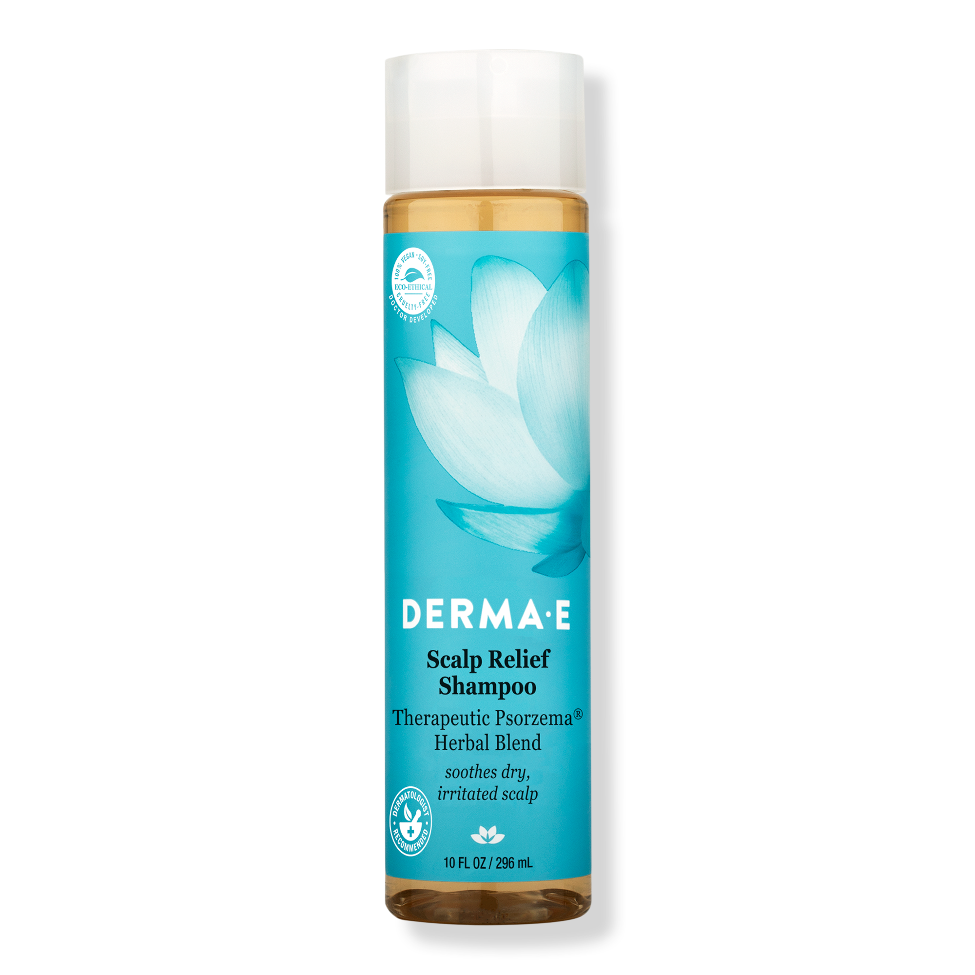 Derma E's Scalp Relief Shampoo contains a doctor-developed, clinically-tested formula that works in four ways to gently cleanse, deflake, soothe and nourish the scalp and hair.