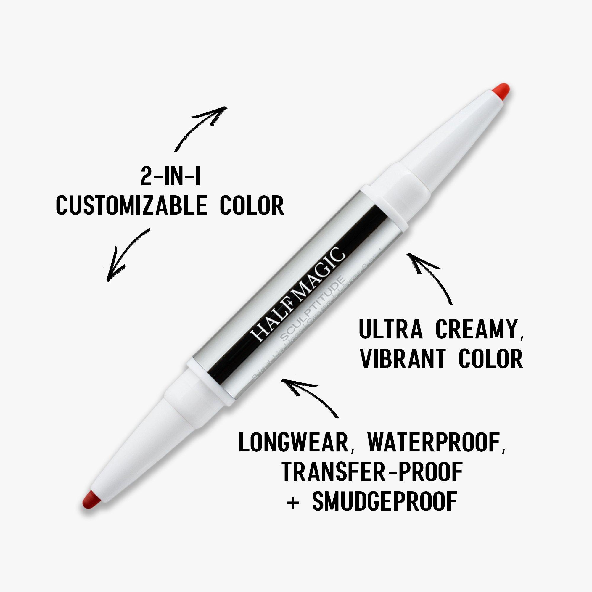 HALF MAGIC's Sculptitude is a 2-in-1 longwear lip liner in curated, complementary shades, formulated to define lips and keep color in place all day.