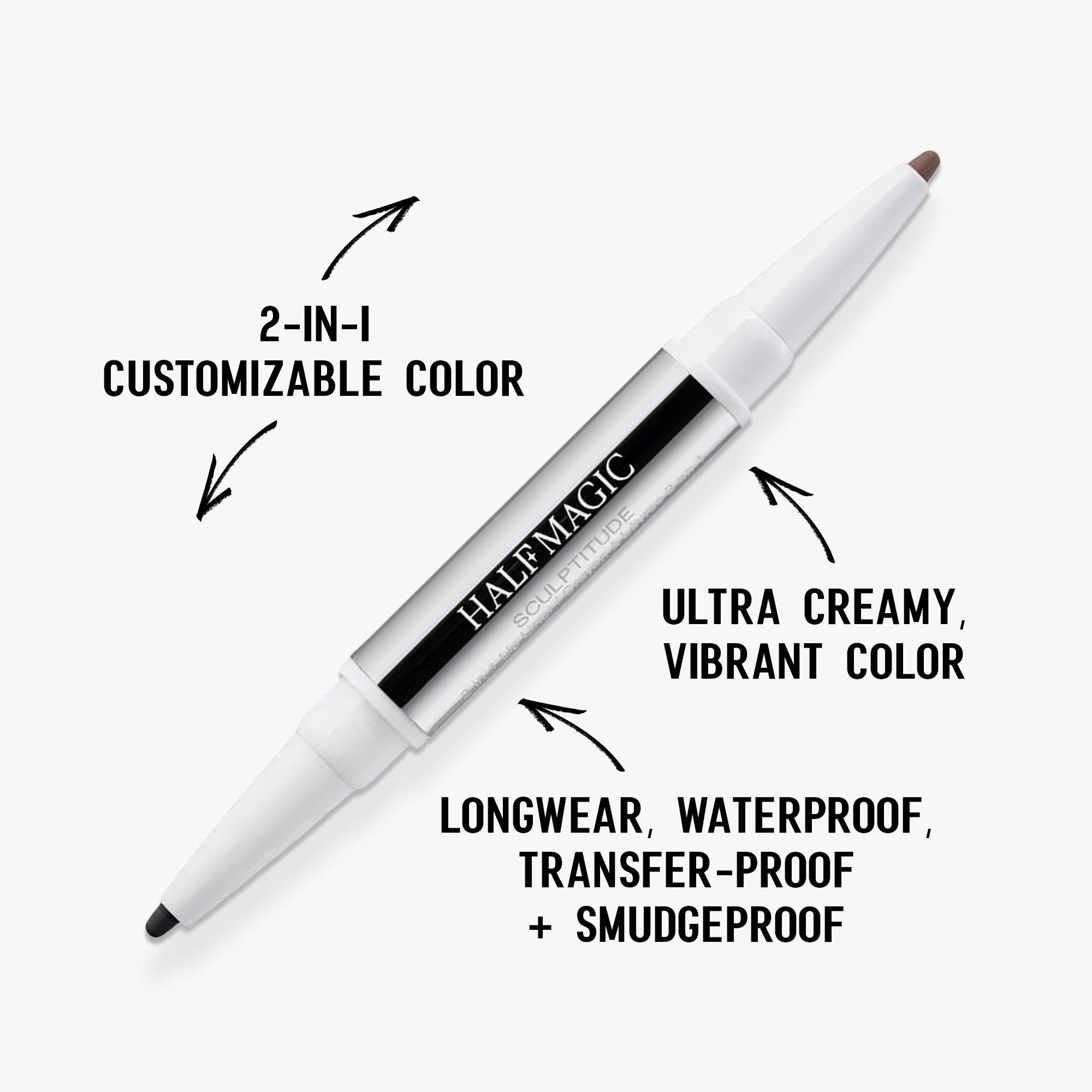HALF MAGIC's Sculptitude is a 2-in-1 longwear lip liner in curated, complementary shades, formulated to define lips and keep color in place all day.