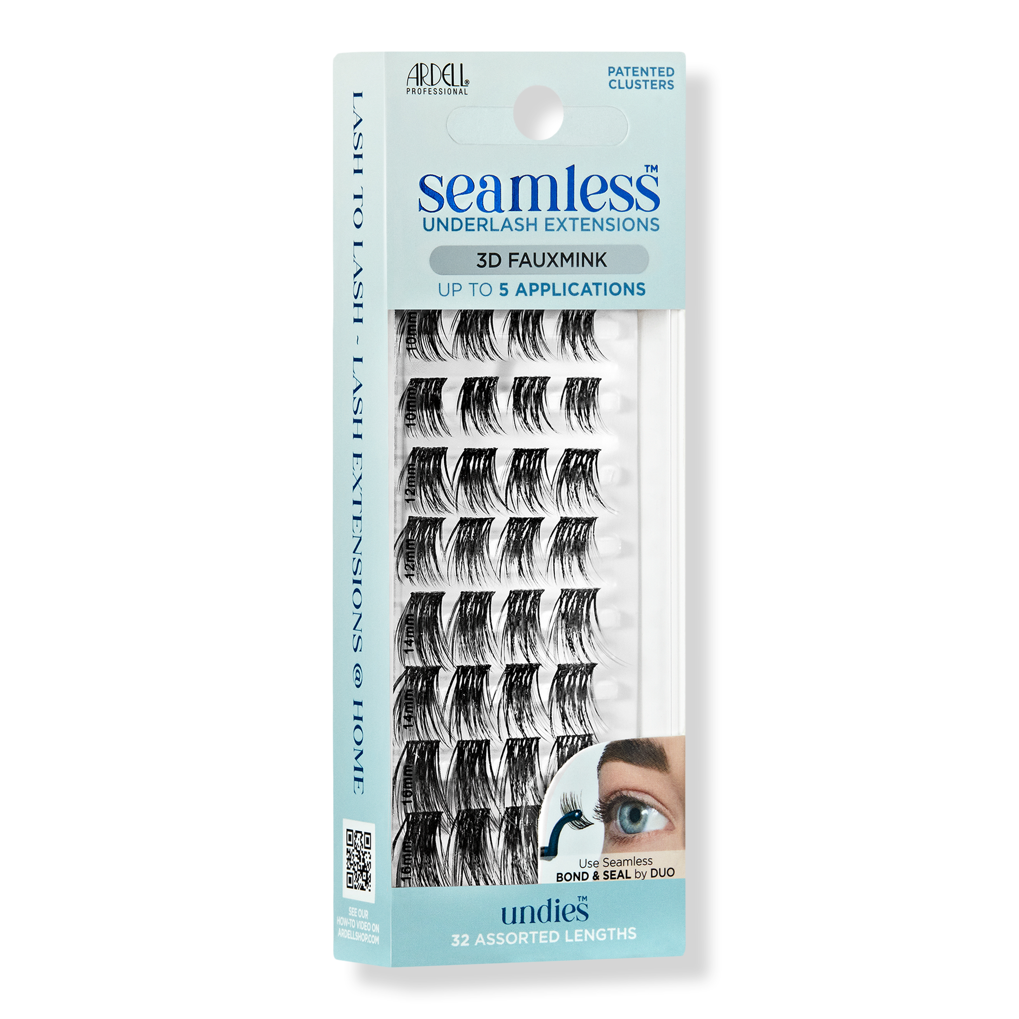 Ardell's Seamless Undies Extensions Refill, 3D Faux Mink are so soft and lightweight, they're comfortable enough to sleep in. Faux Mink are applied UNDER your natural lashes to hide the band for a no-show, seamlessly undetectable finish.