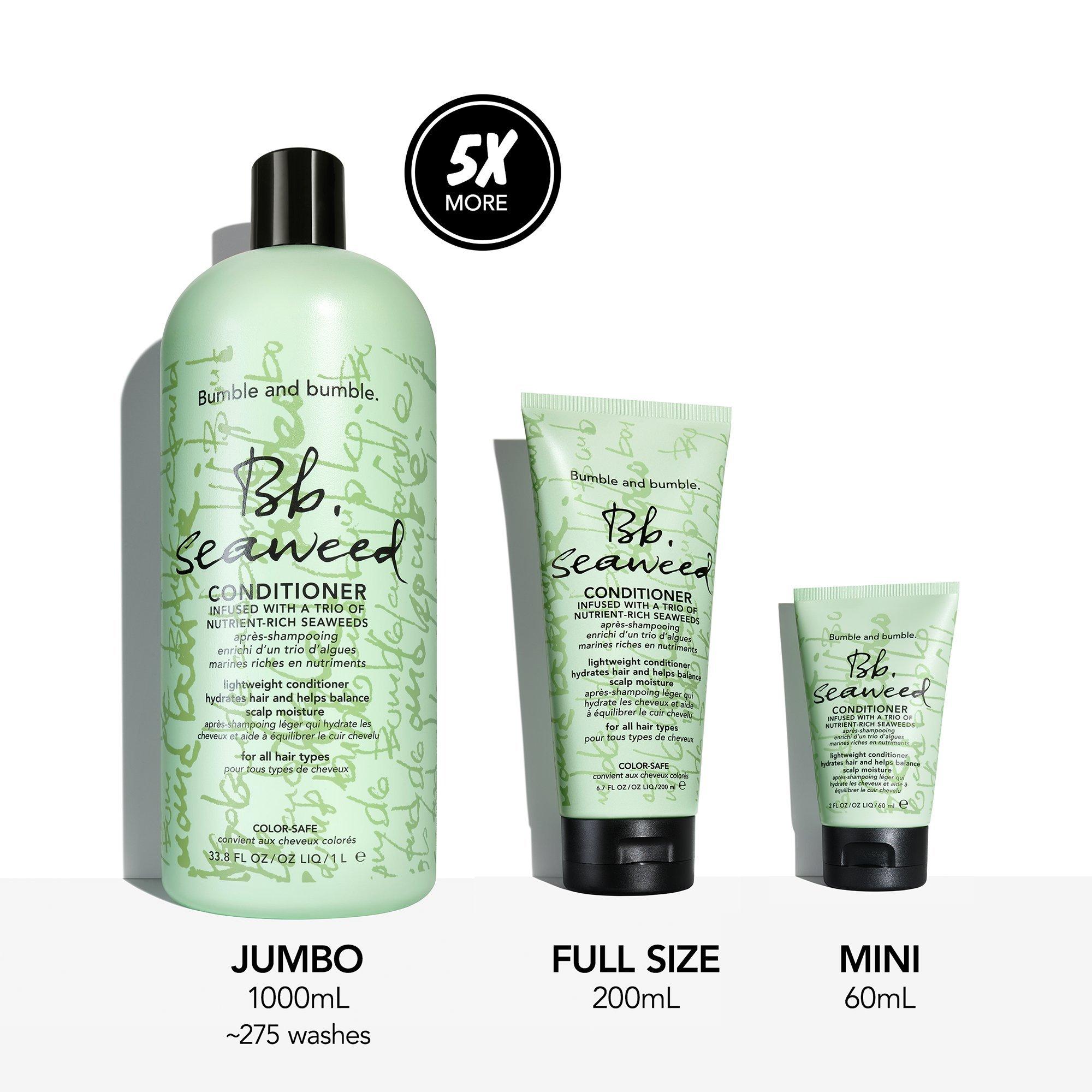 Bumble and bumble Seaweed Nourishing Conditioner helps balance scalp moisture + nurtures hair and scalp. This hydrator leaves your hair feeling smooth and reduces frizz. 91% showed improved scalp hydration in clinical testing on 32 subjects when used together with Seaweed Shampoo after using 3 times