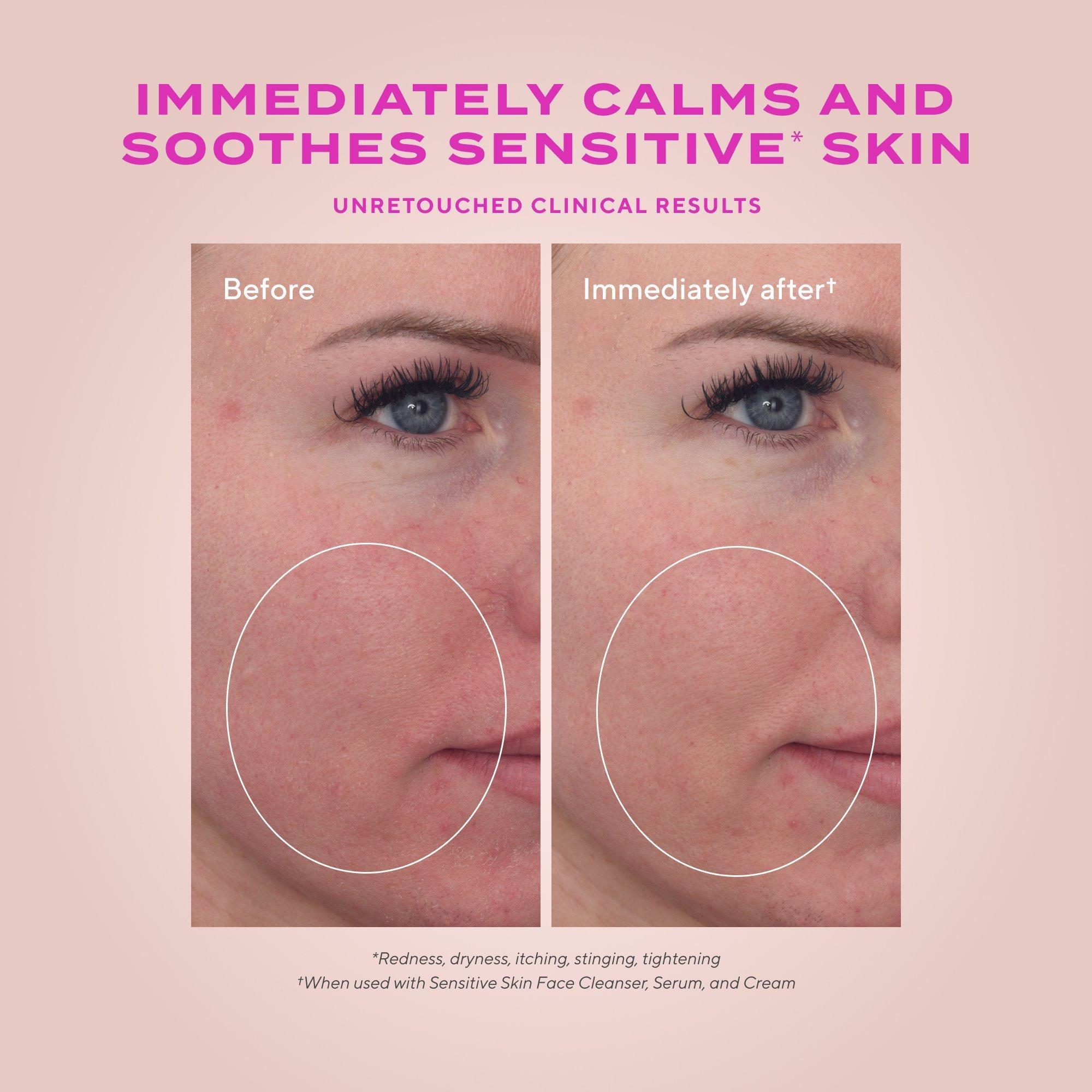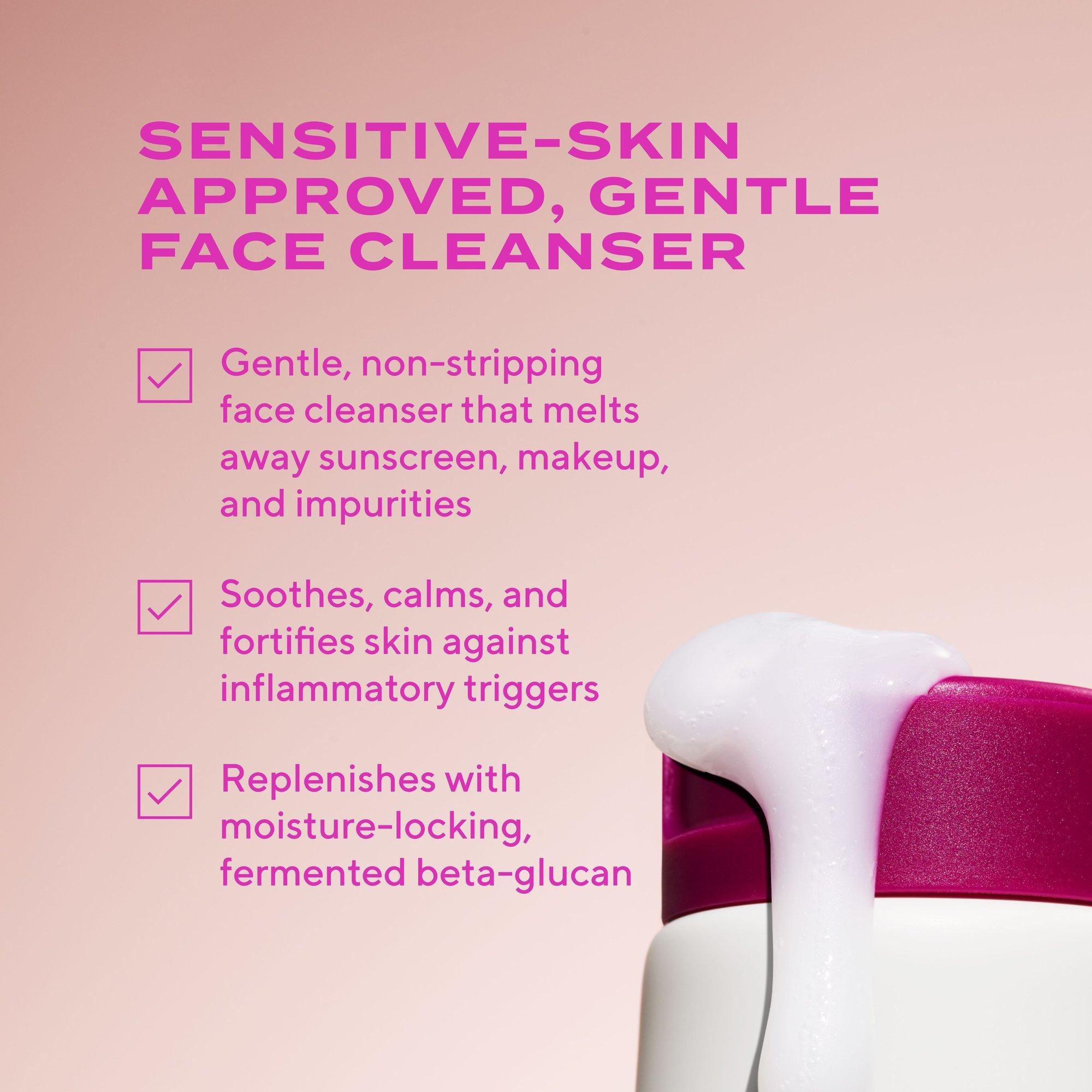 Massage over face and neck to gently remove impurities, oil, makeup and SPF, while leaving behind moisture to reduce signs of sensitivity. Rise or wipe off.