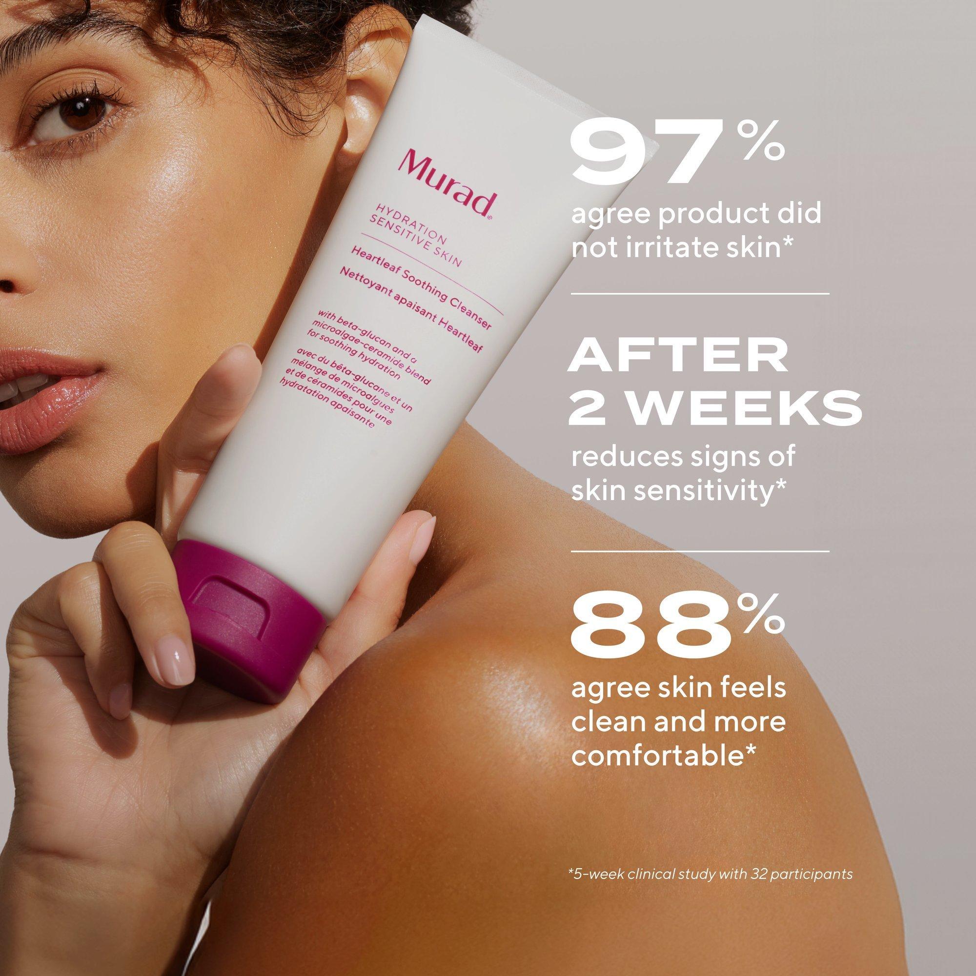 Murad's Sensitive Skin Soothing Face Cleanser is a gentle, non-stripping cleanser that calms and soothes sensitive skin, reducing redness and dryness in just 2 weeks