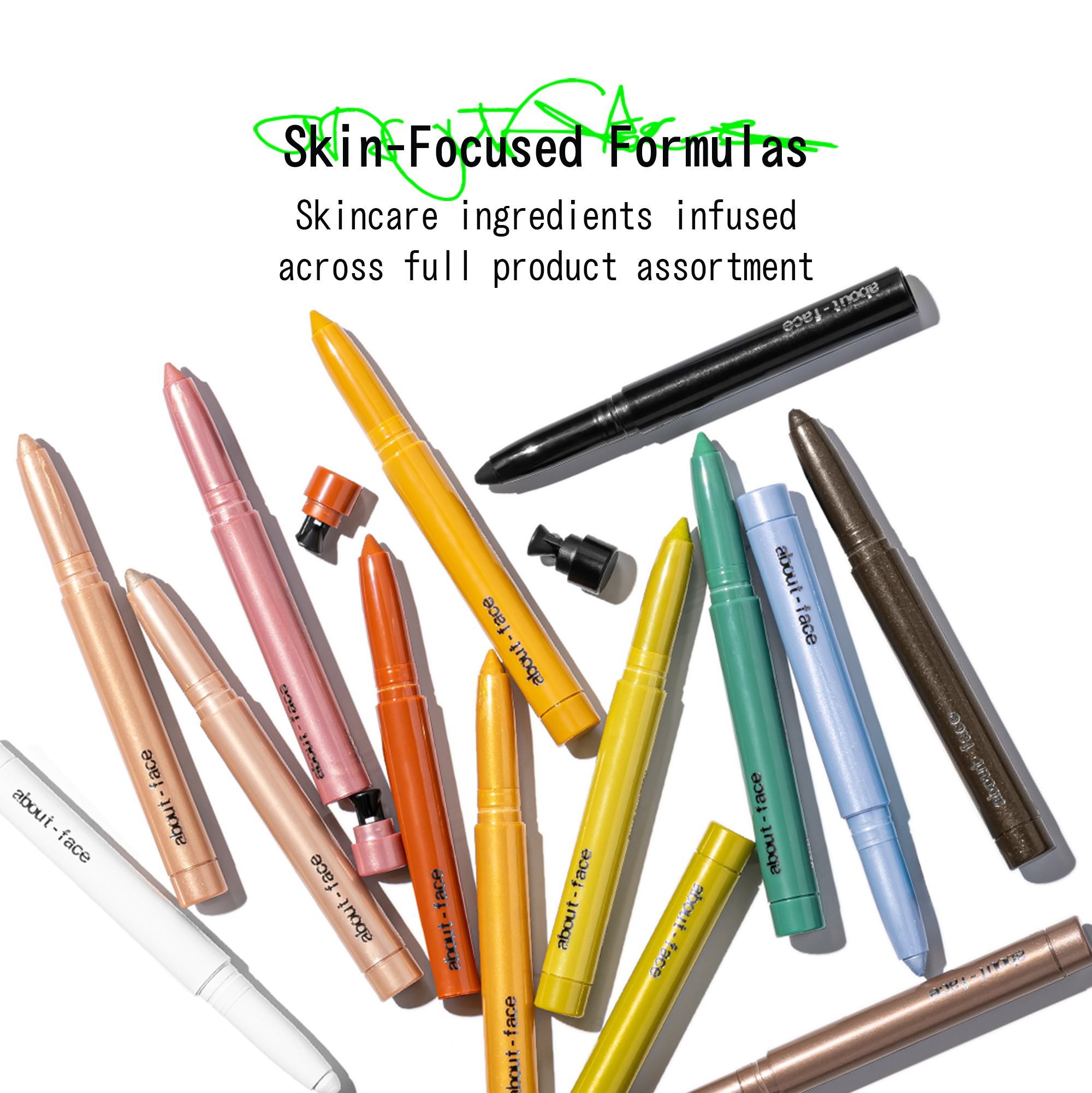 The about-face Shadowsticks are an insanely pigmented, one-stroke eye crème. Intense color with staying power in matte or pearly shades.