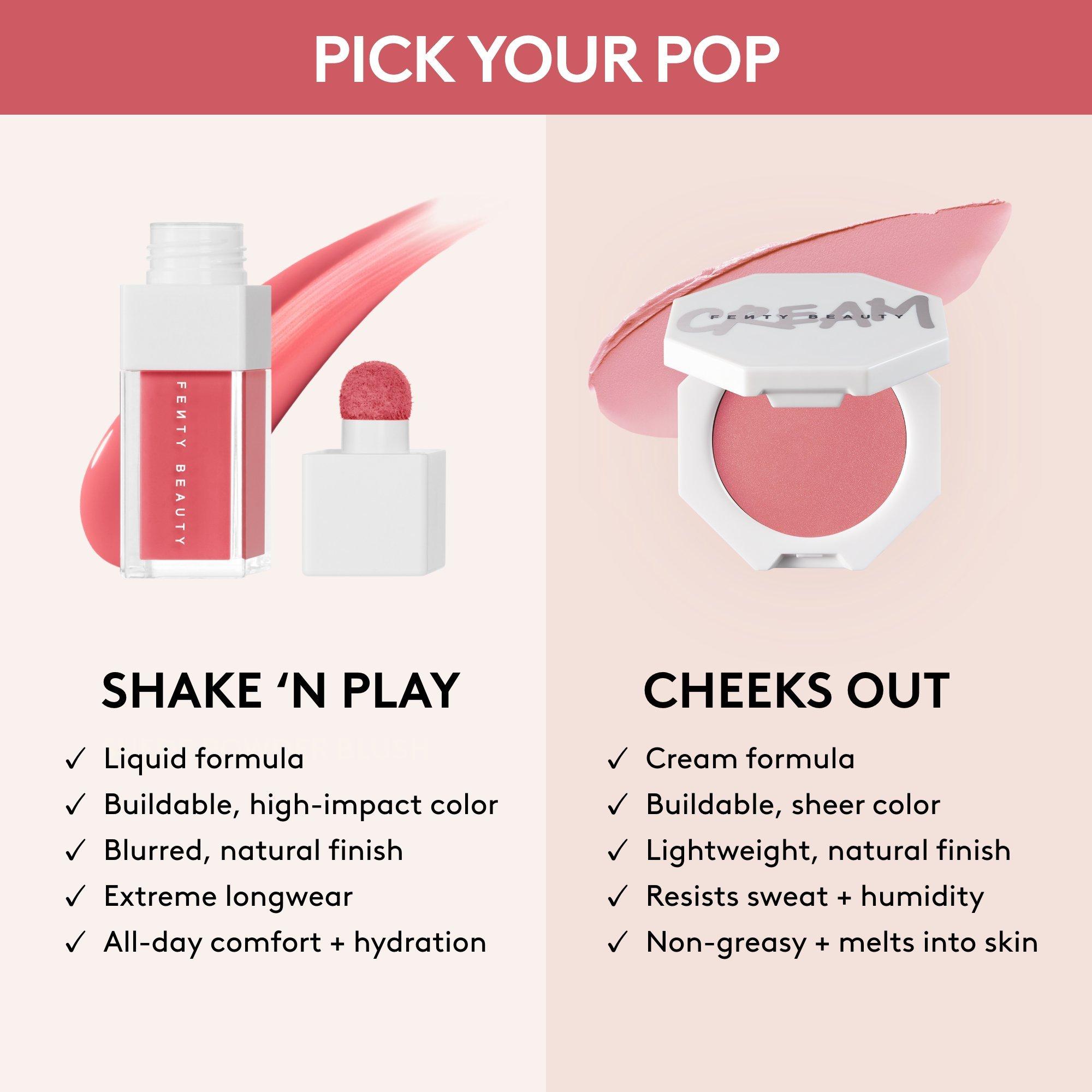 It's time to play—your way—with a lightweight FENTY BEAUTY liquid blush that has buildable, fade-resistant color + a natural, blurred finish that lasts up to 12 hours.