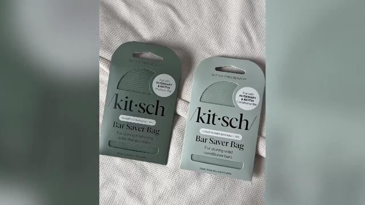 Extend the life of your bars with the Kitsch Bottle-Free Beauty Shampoo Bar Saver Bag. Hang your bar in the recycled mesh fabric bag for easy storage and quick drying-plus the handy tag identifier makes sure you never mix up your bars.