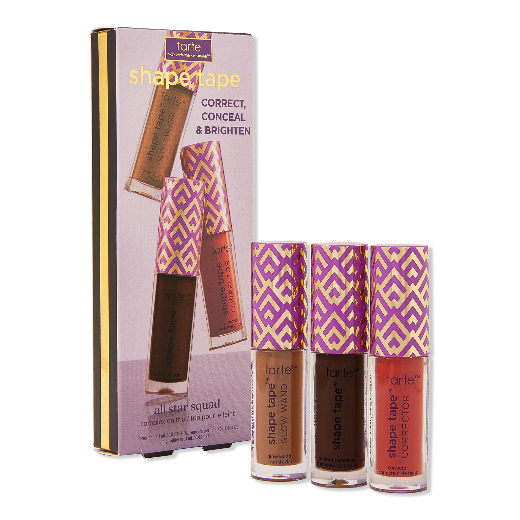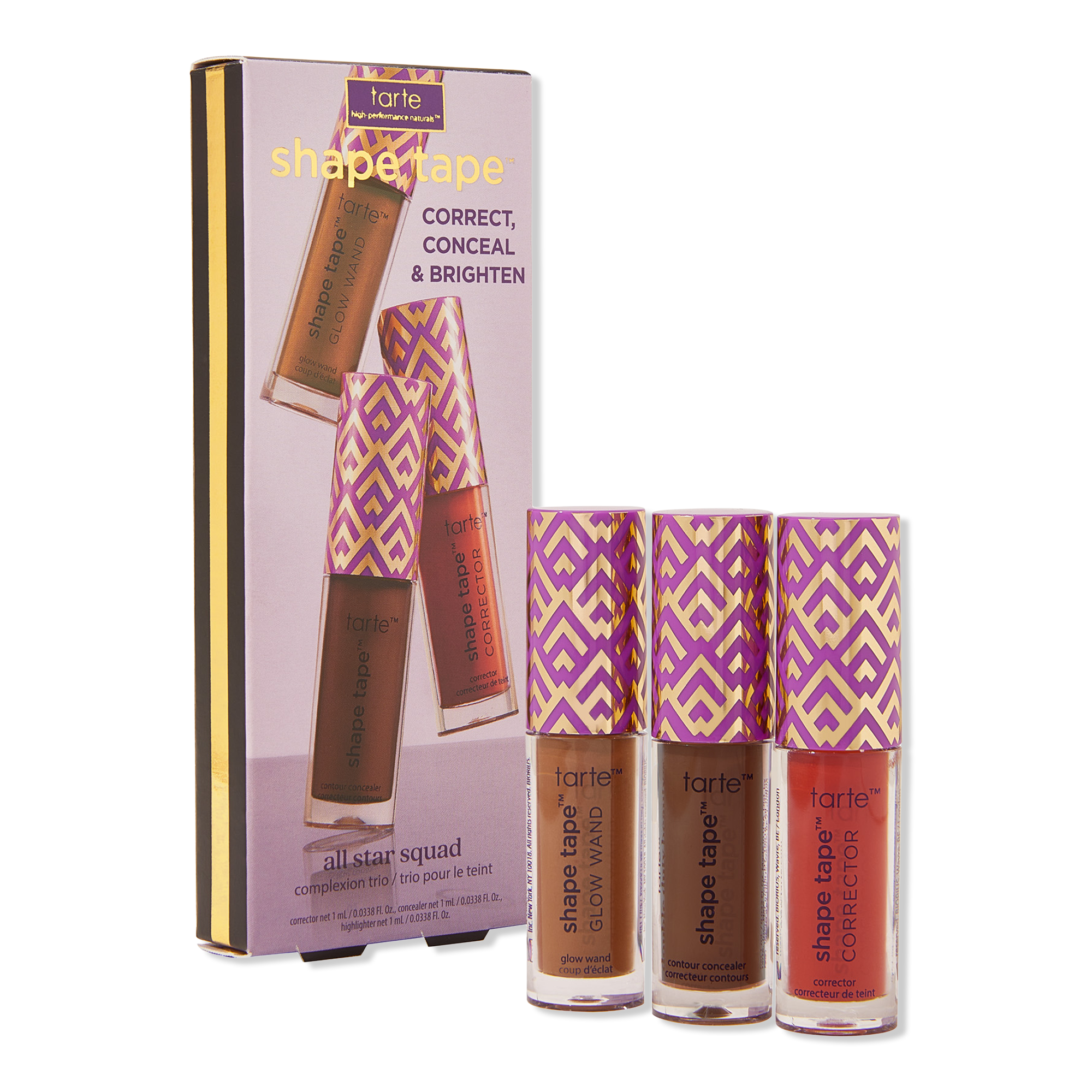 Achieve a full face of flawless with tarte's shape tape all star squad complexion trio of best-selling complexion to correct, conceal & brighten!