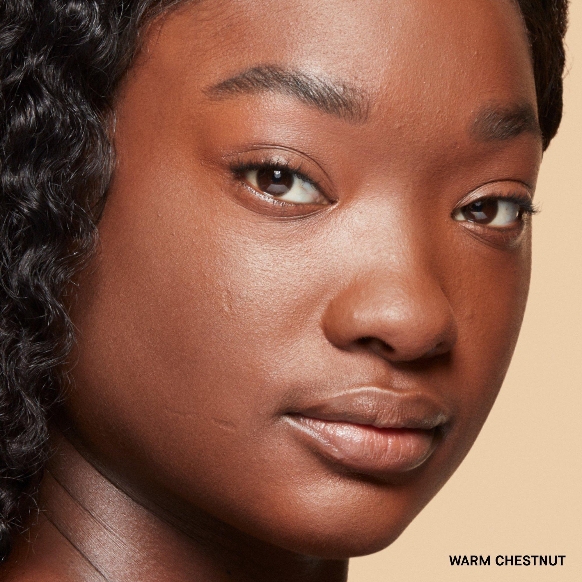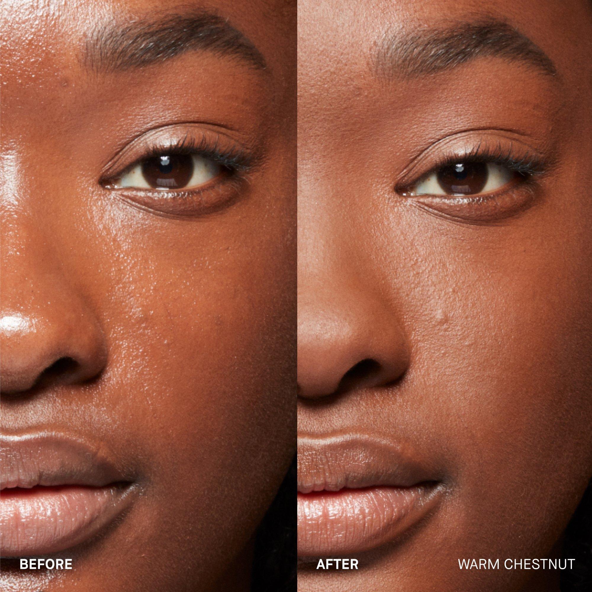 Using the included powder puff or a powder brush, apply setting powder with gentle pressing motions along the T-zone to target shine-prone areas, or apply all over for a more matte look.