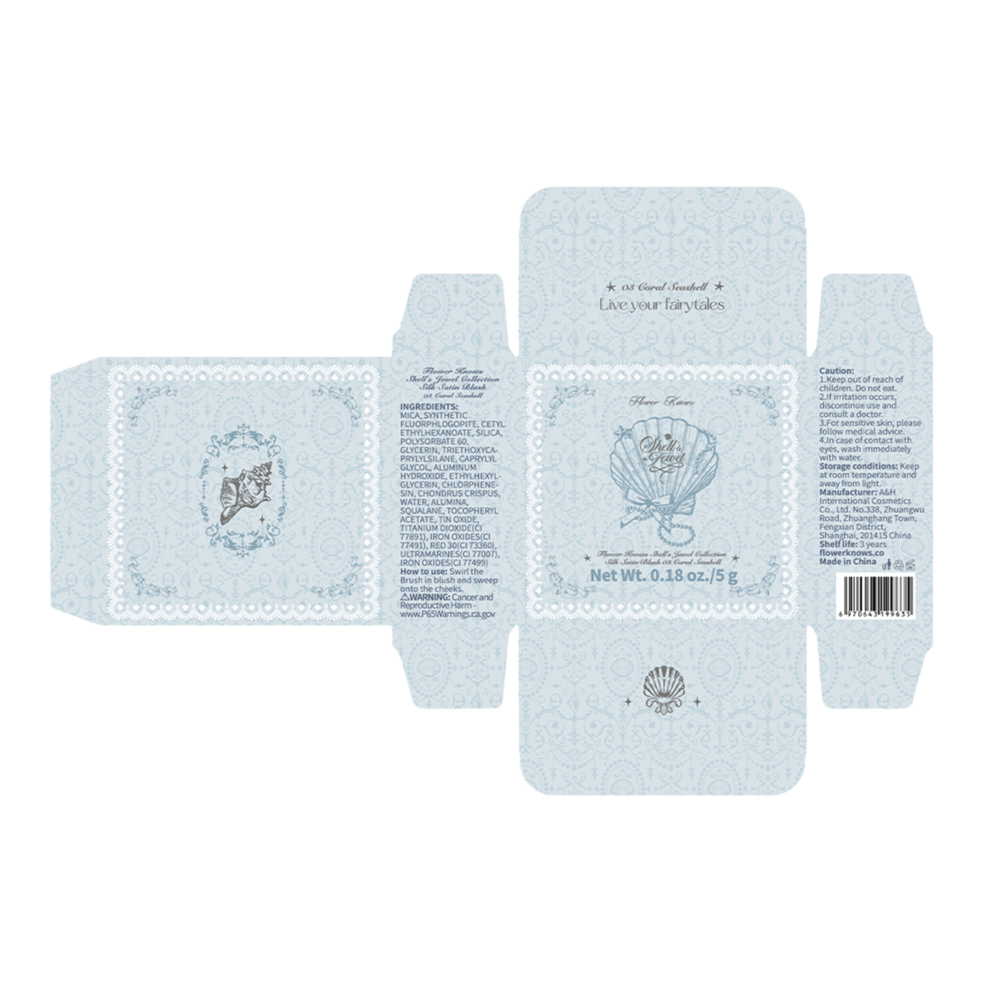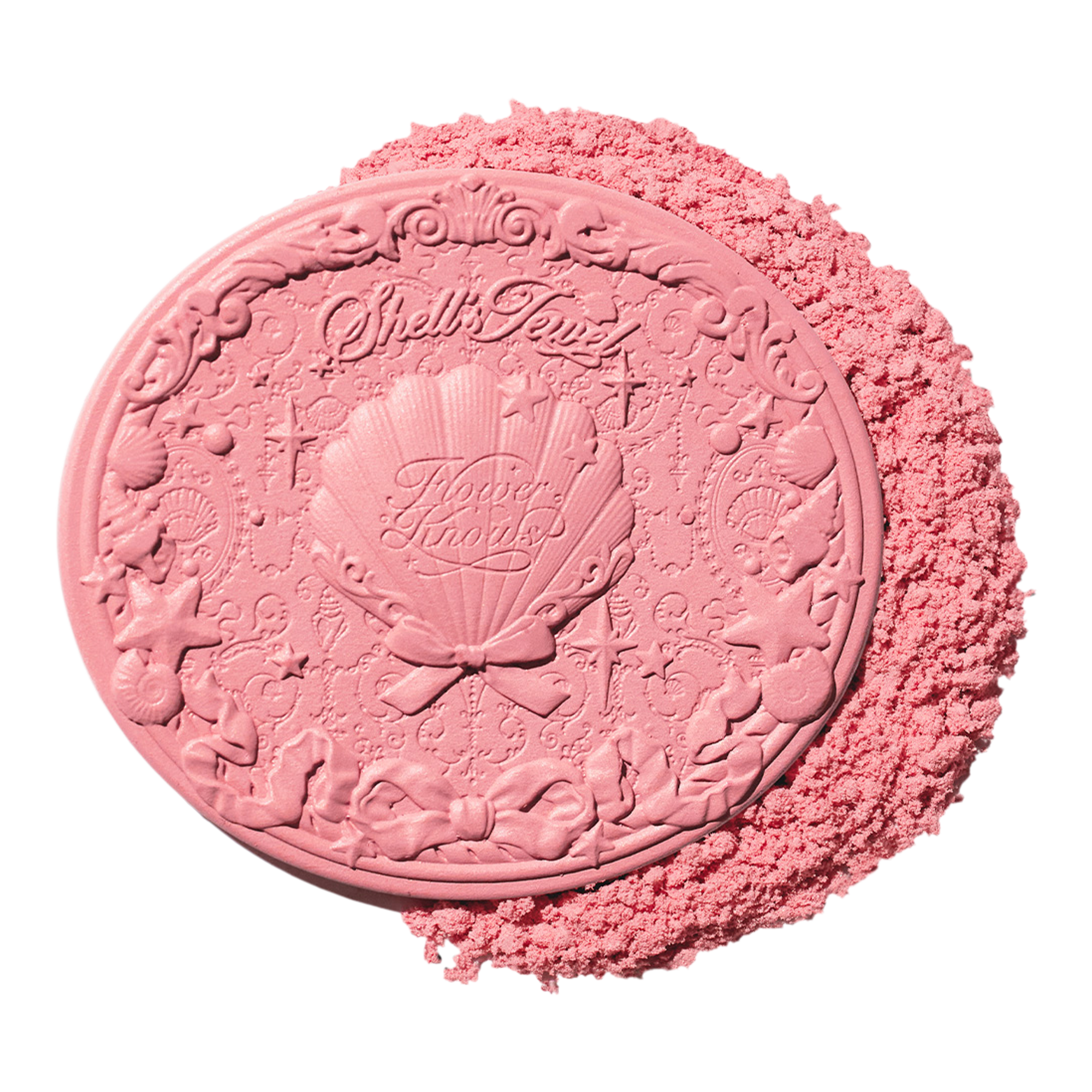 Flower Knows Shell's Jewel Silk Satin Blush is a dual blush + highlight which delivers a transparent veil of color with illuminating shimmer for an effortless, lit-from-within glow in just one swipe. Formulated with hydrating vitamin E, this silky powder blush feels as good on the skin as it looks.
