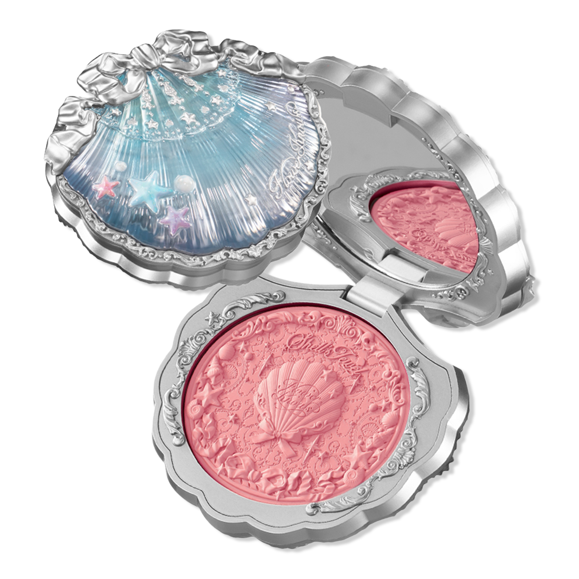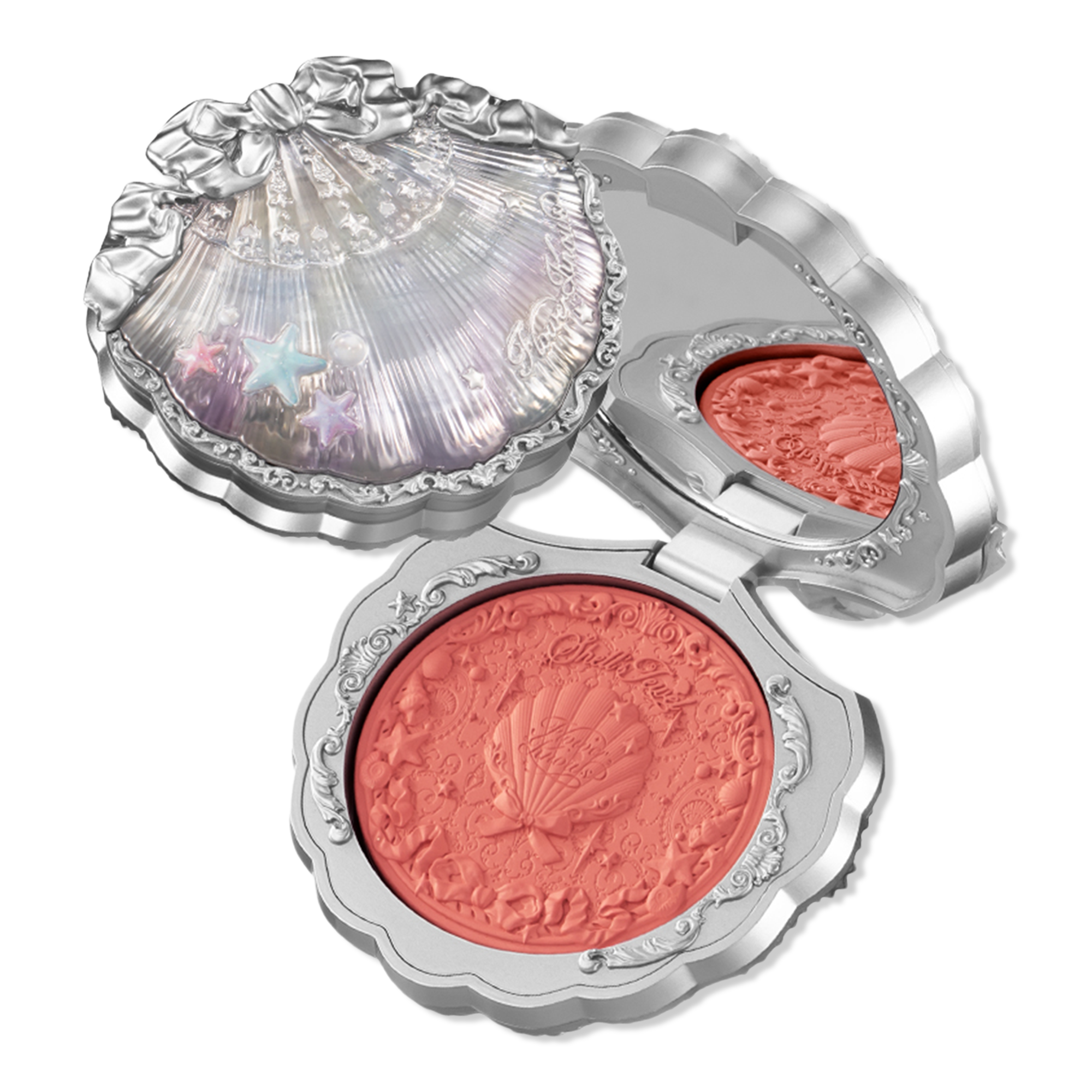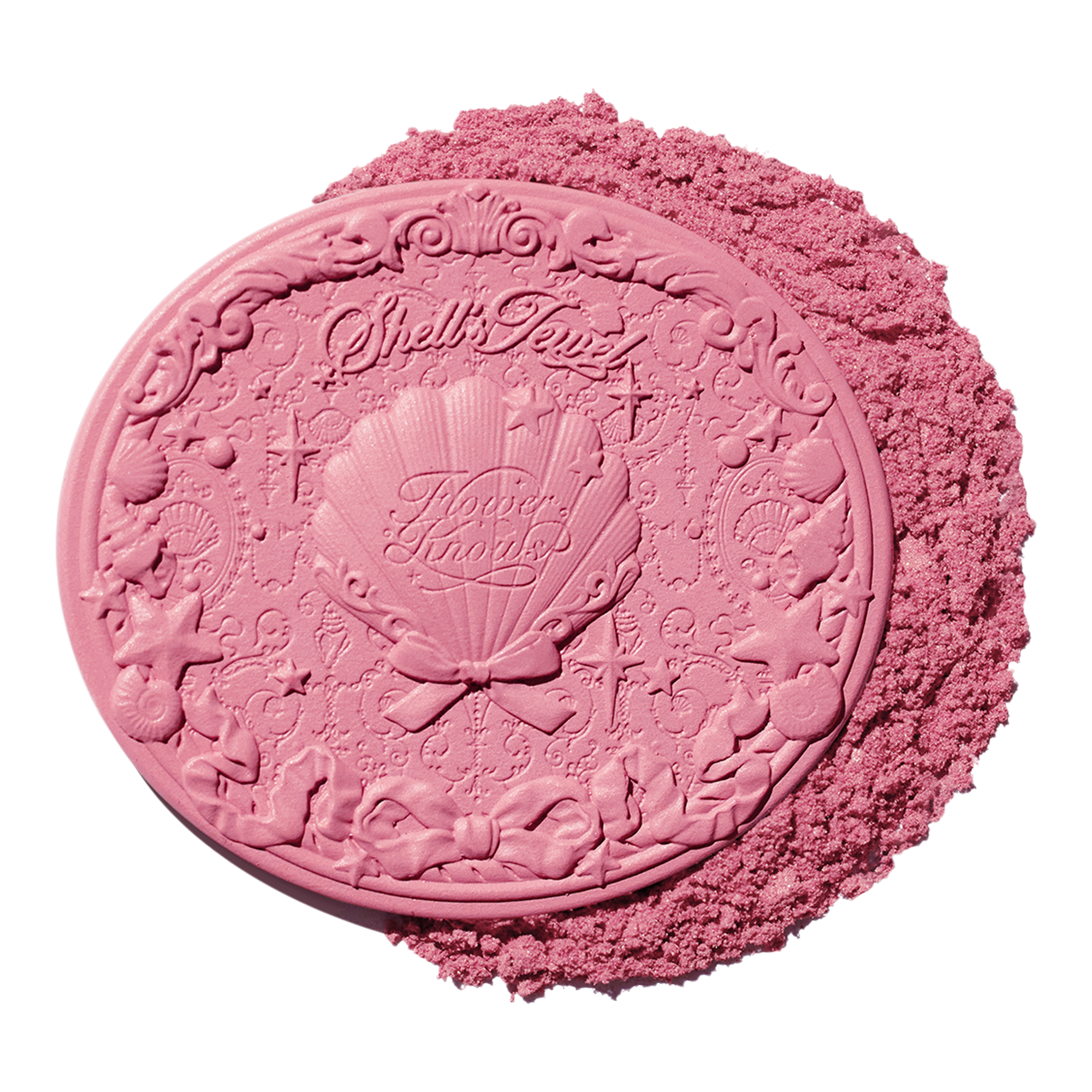 Flower Knows Shell's Jewel Silk Satin Blush is a dual blush + highlight which delivers a transparent veil of color with illuminating shimmer for an effortless, lit-from-within glow in just one swipe. Formulated with hydrating vitamin E, this silky powder blush feels as good on the skin as it looks.