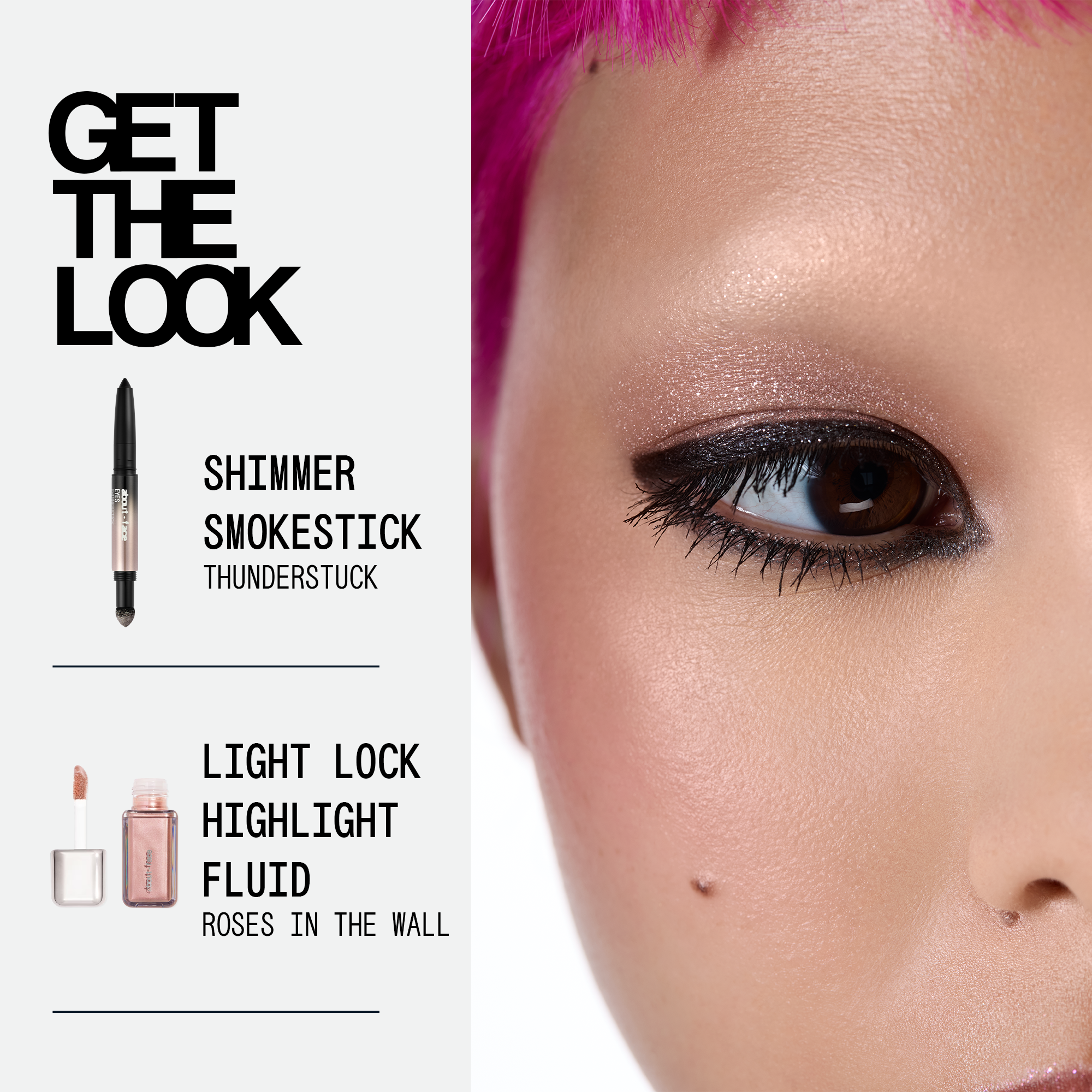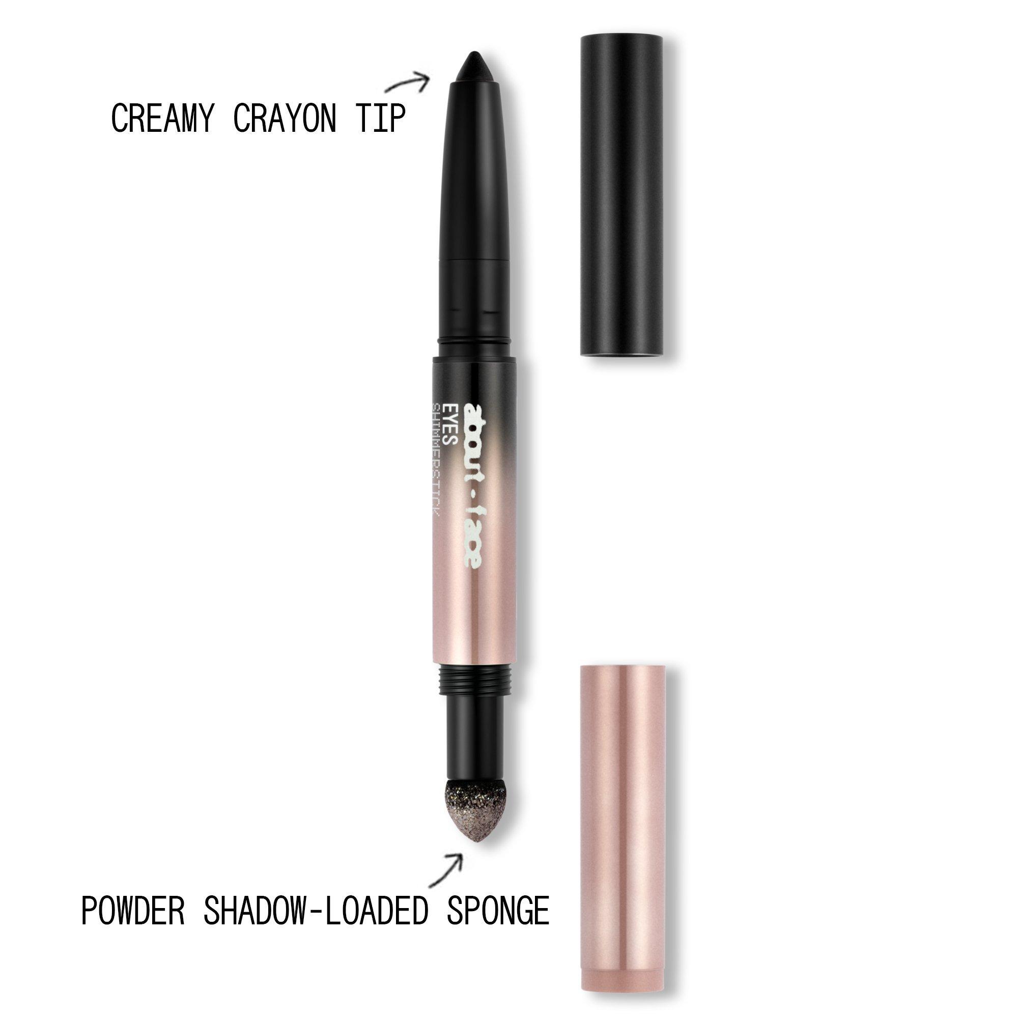 This about-face Shimmerstick is Shimmer-loaded cream + powder eye combo that creates an effortless smoky eye in seconds.