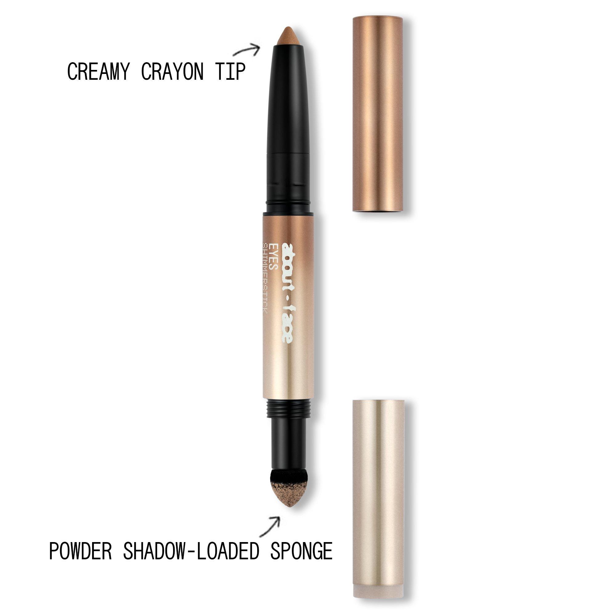 This about-face Shimmerstick is Shimmer-loaded cream + powder eye combo that creates an effortless smoky eye in seconds.