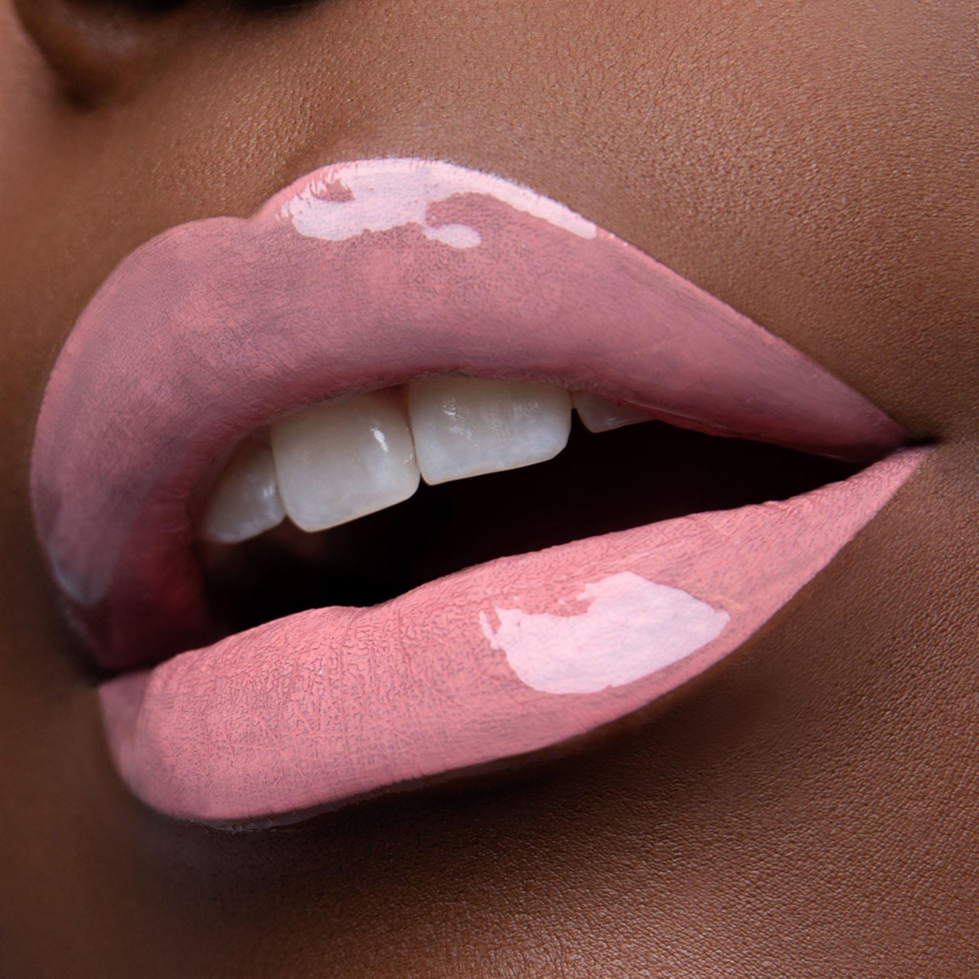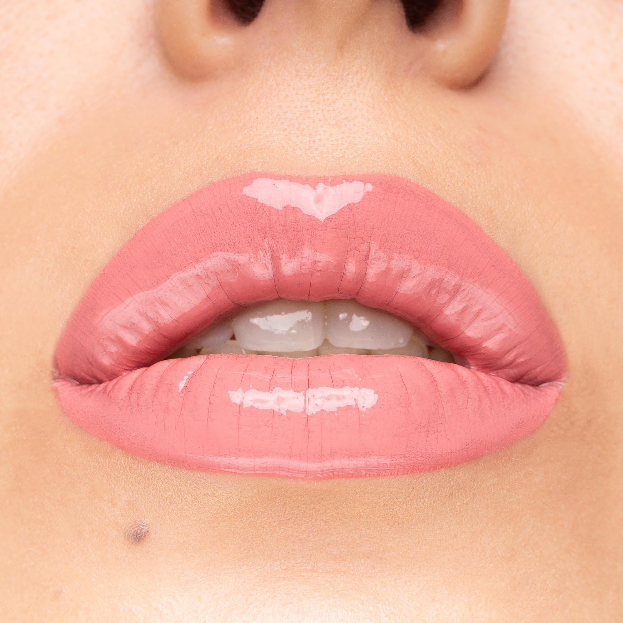Apply base coat to bare lips. Wait 90 seconds to dry. Lock in pigment with glossy top coat. Result: High shine color with 16h, zero color transfer wear.